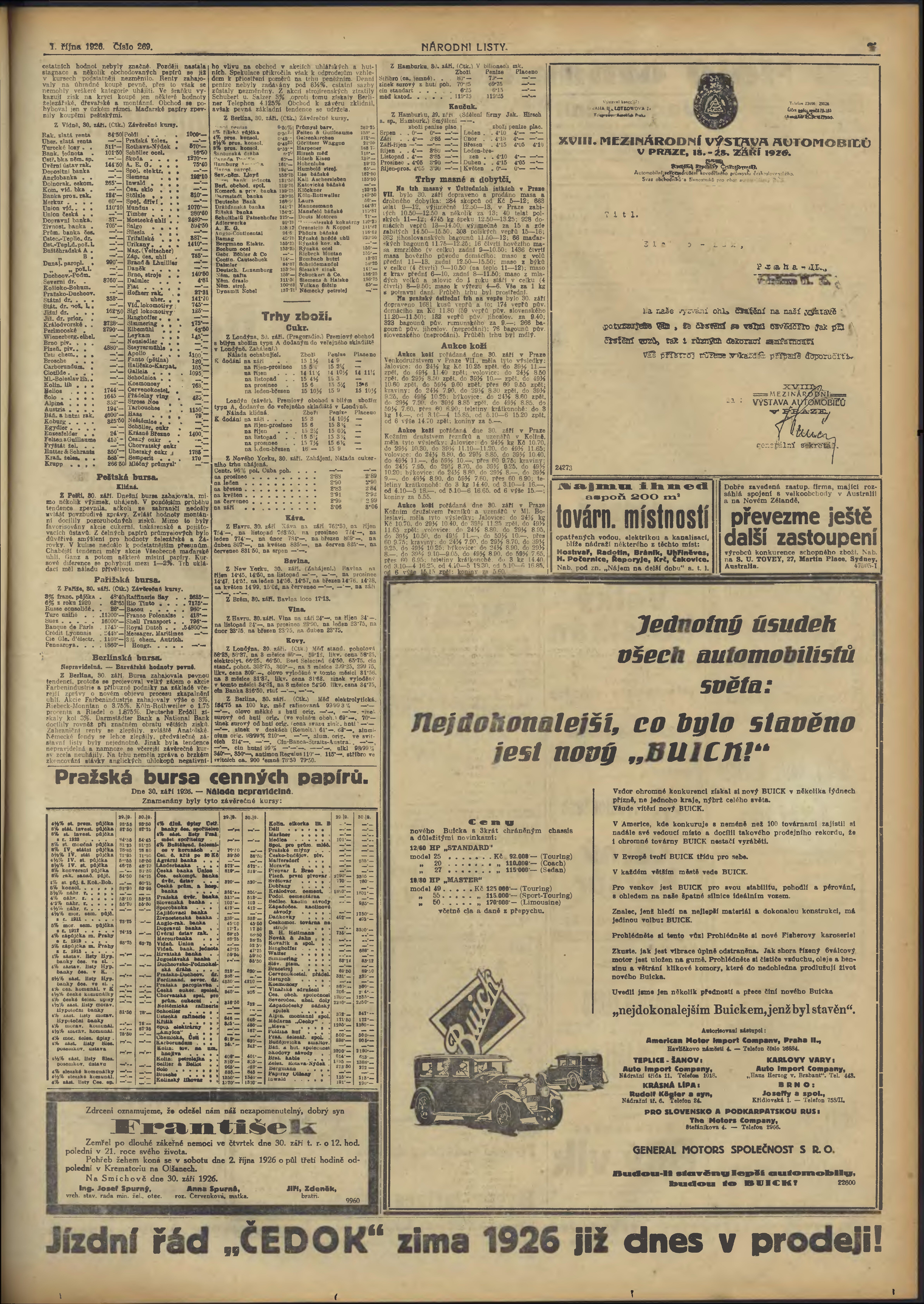 * Datum vydání výtisku: 1.10.1926 Číslo výtisku: 269