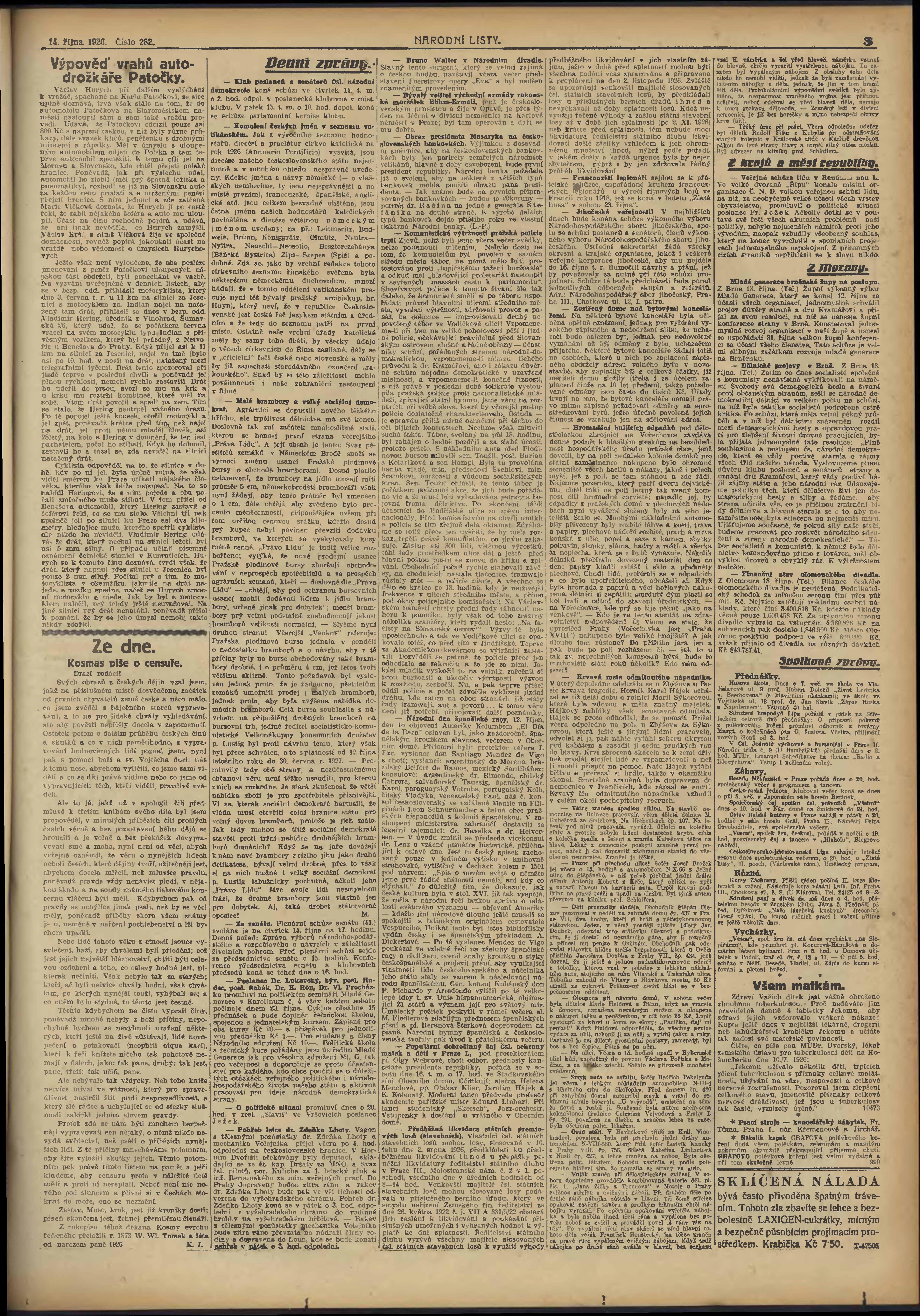 * Datum vydání výtisku: 14.10.1926 Číslo výtisku: 282