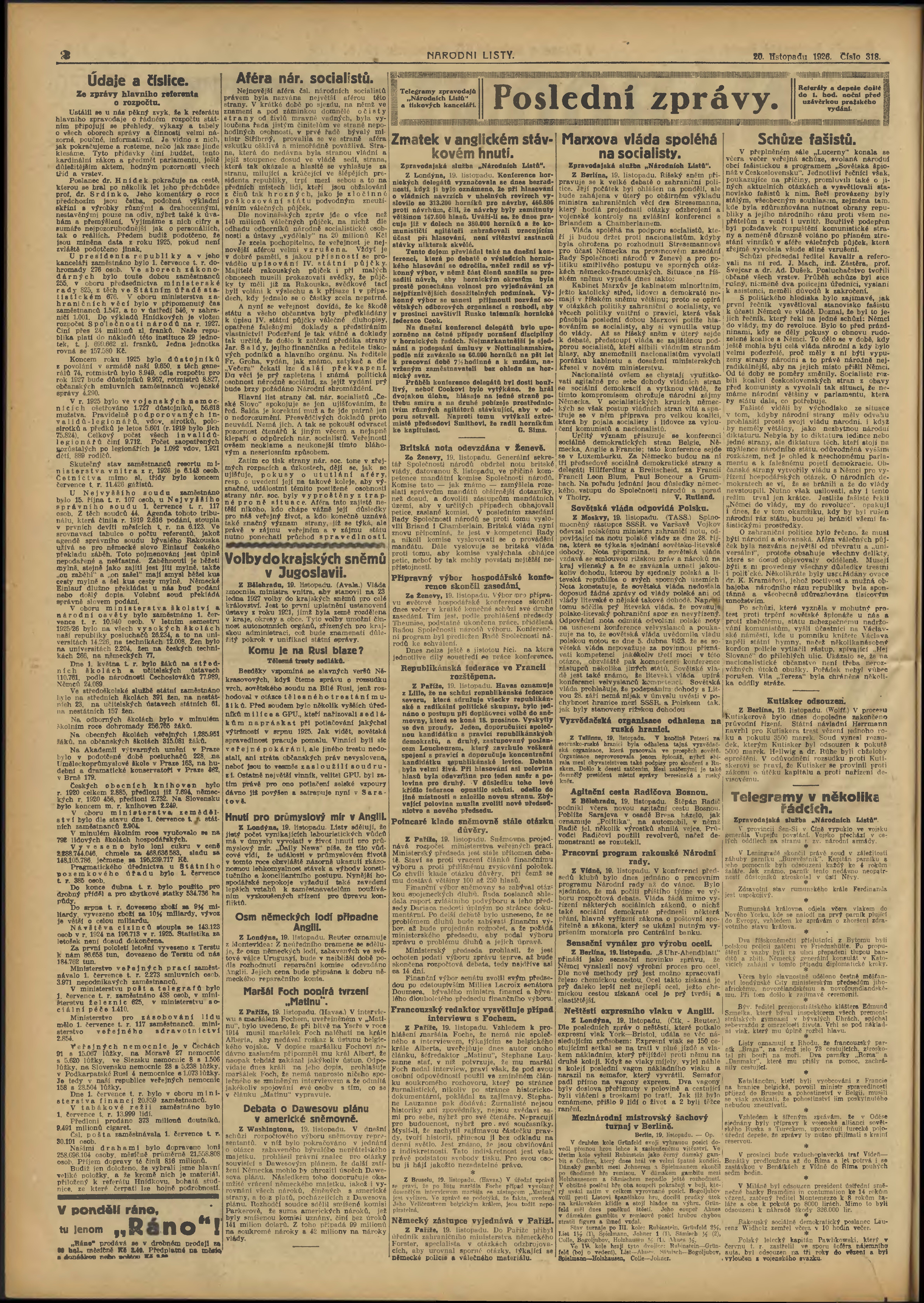 * Datum vydání výtisku: 20.11.1926 Číslo výtisku: 318