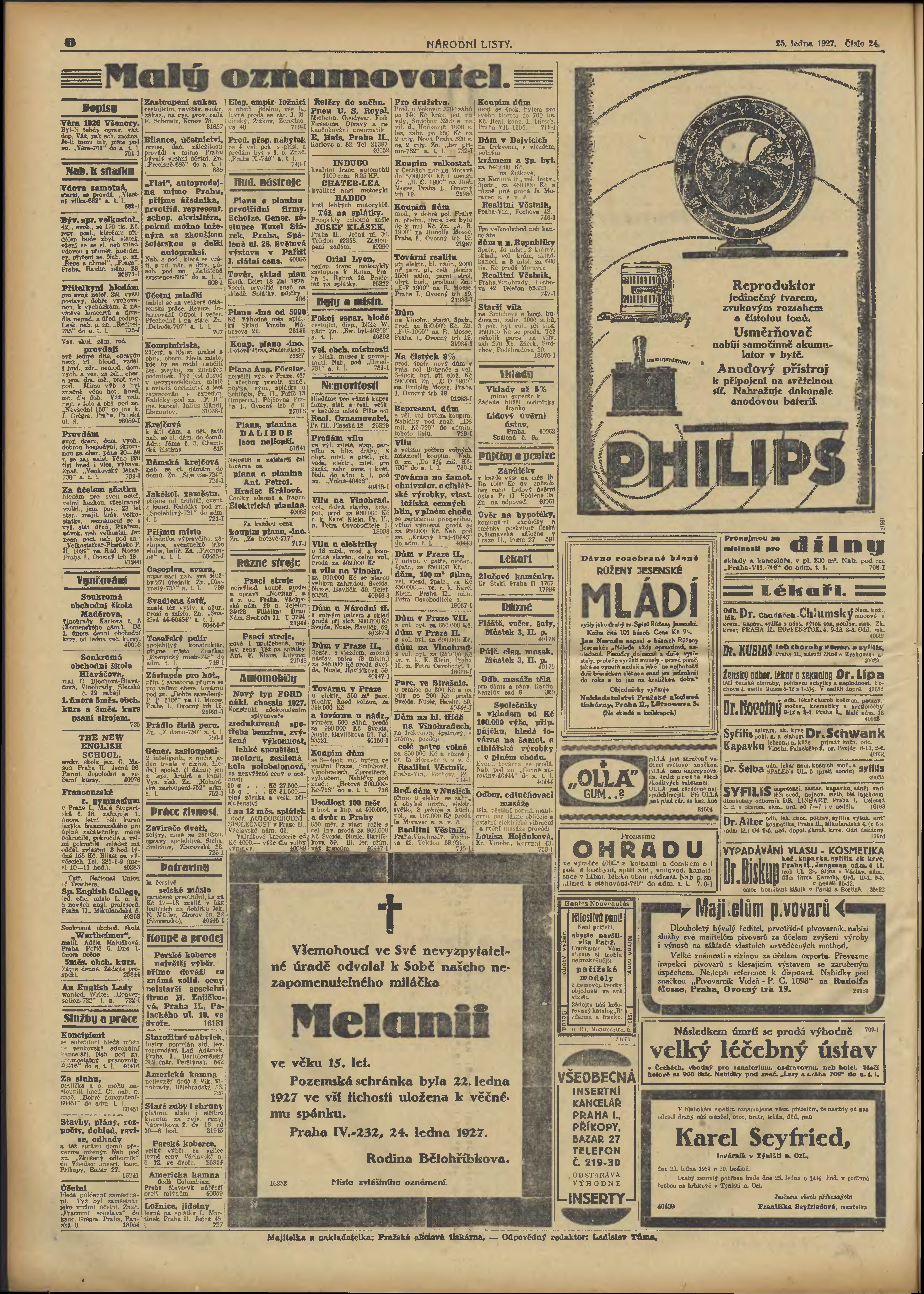 * Datum vydání výtisku: 25.1.1927 Číslo výtisku: 24