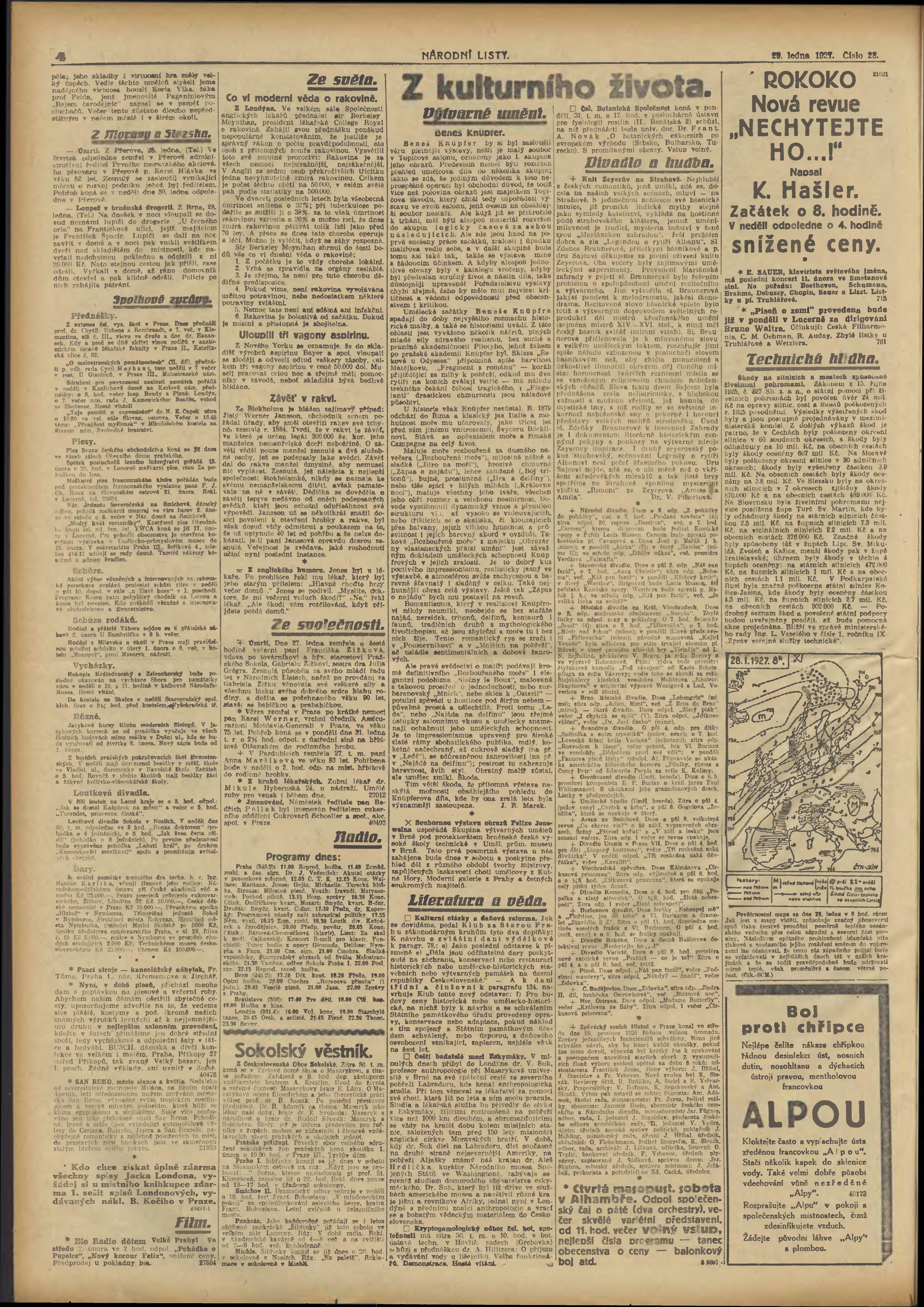 * Datum vydání výtisku: 29.1.1927 Číslo výtisku: 28