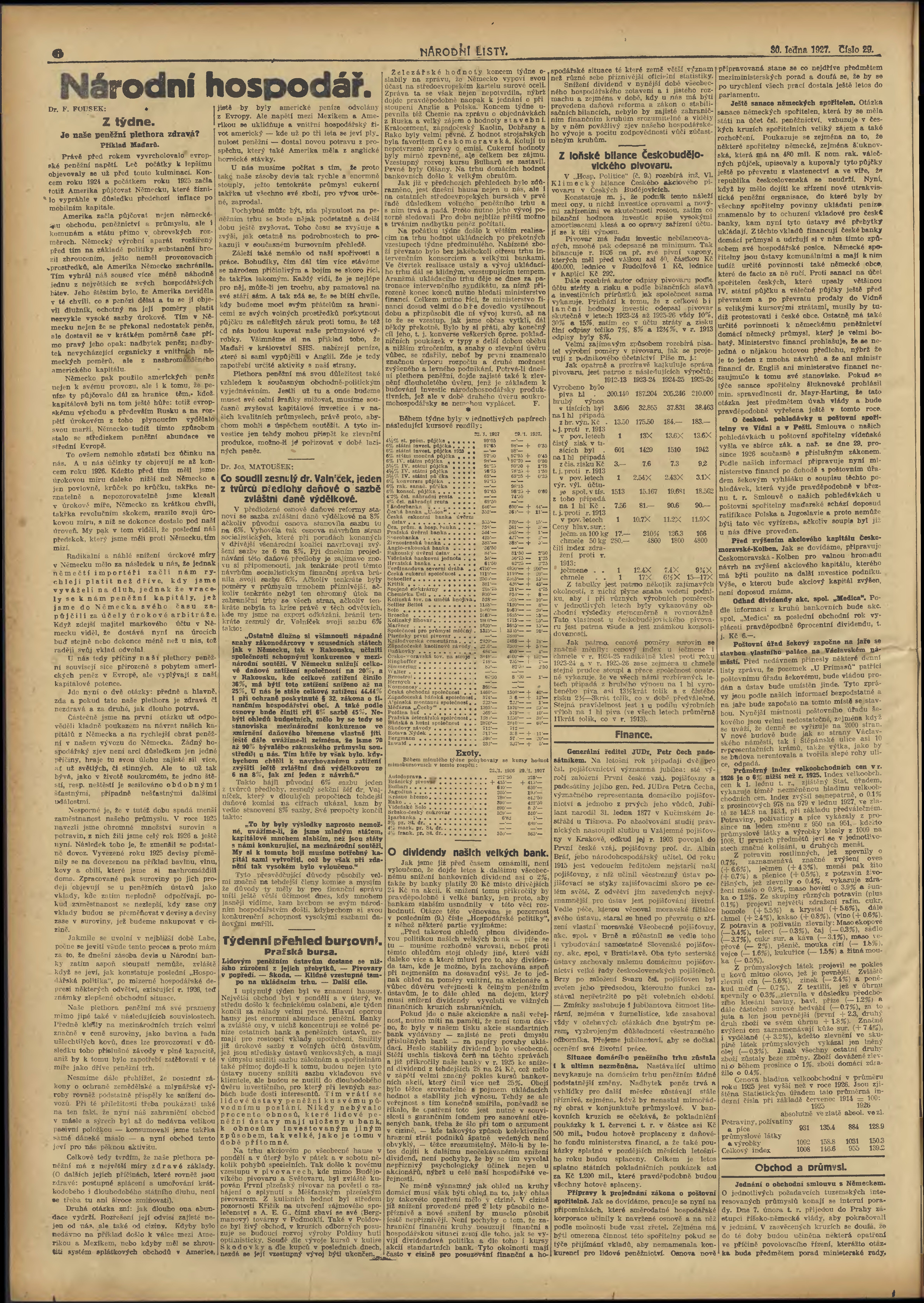 * Datum vydání výtisku: 30.1.1927 Číslo výtisku: 29