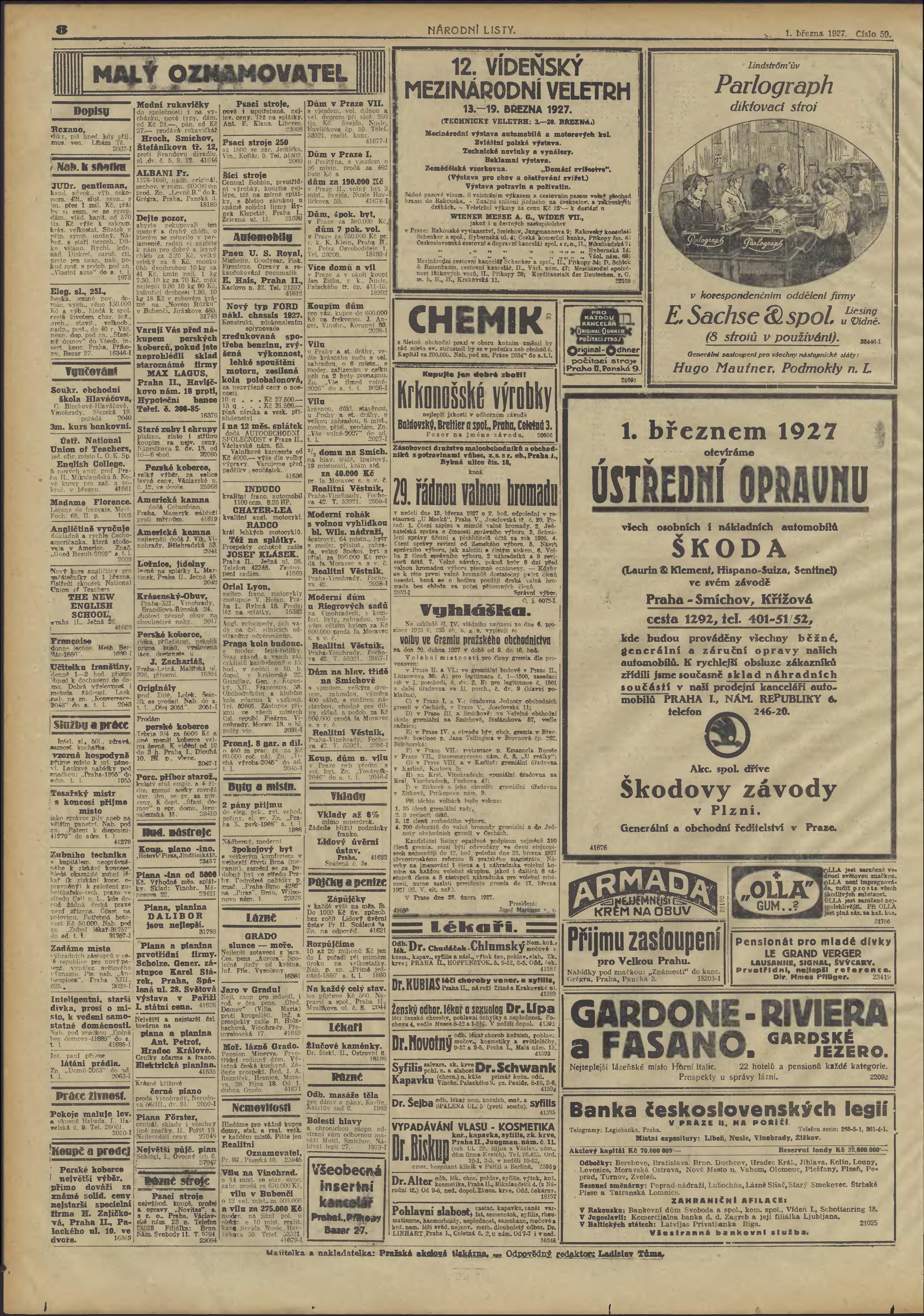 * Datum vydání výtisku: 1.3.1927 Číslo výtisku: 59