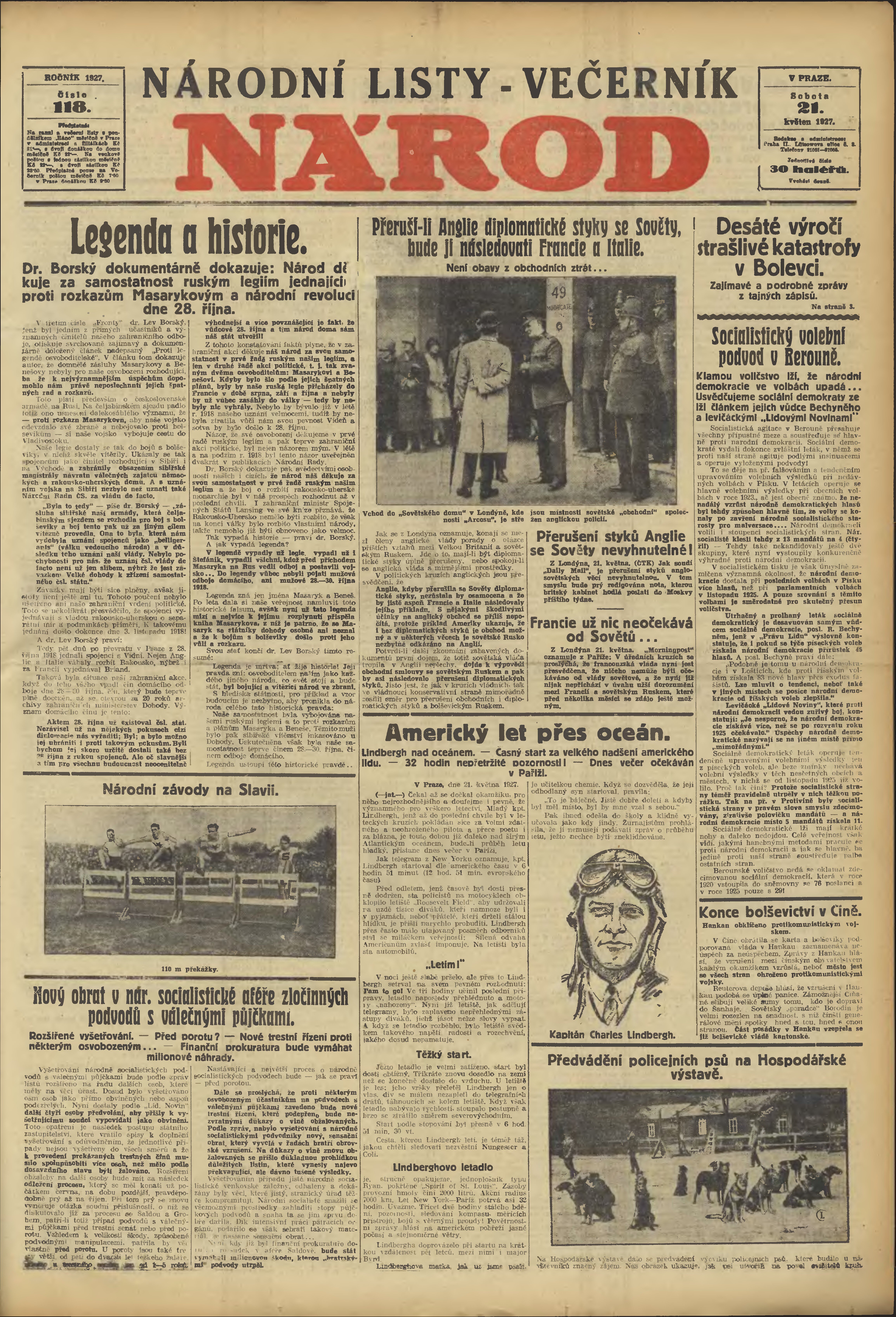 * Datum vydání výtisku: 21.5.1927 Číslo výtisku: 118 Poznámky k výtisku: večerní vydání;