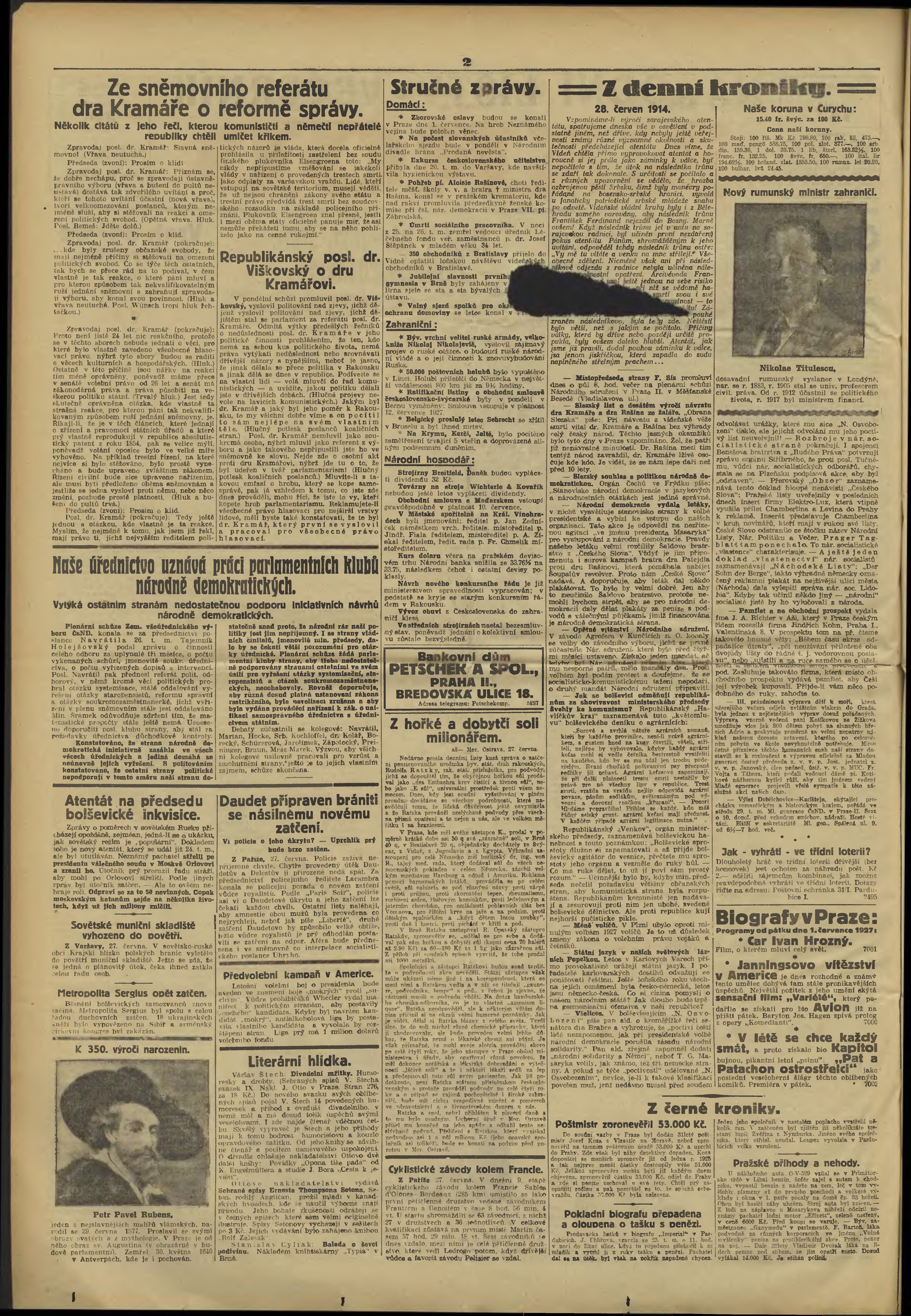 večerní vydání; s. (1) - 2 poškozená předloha;