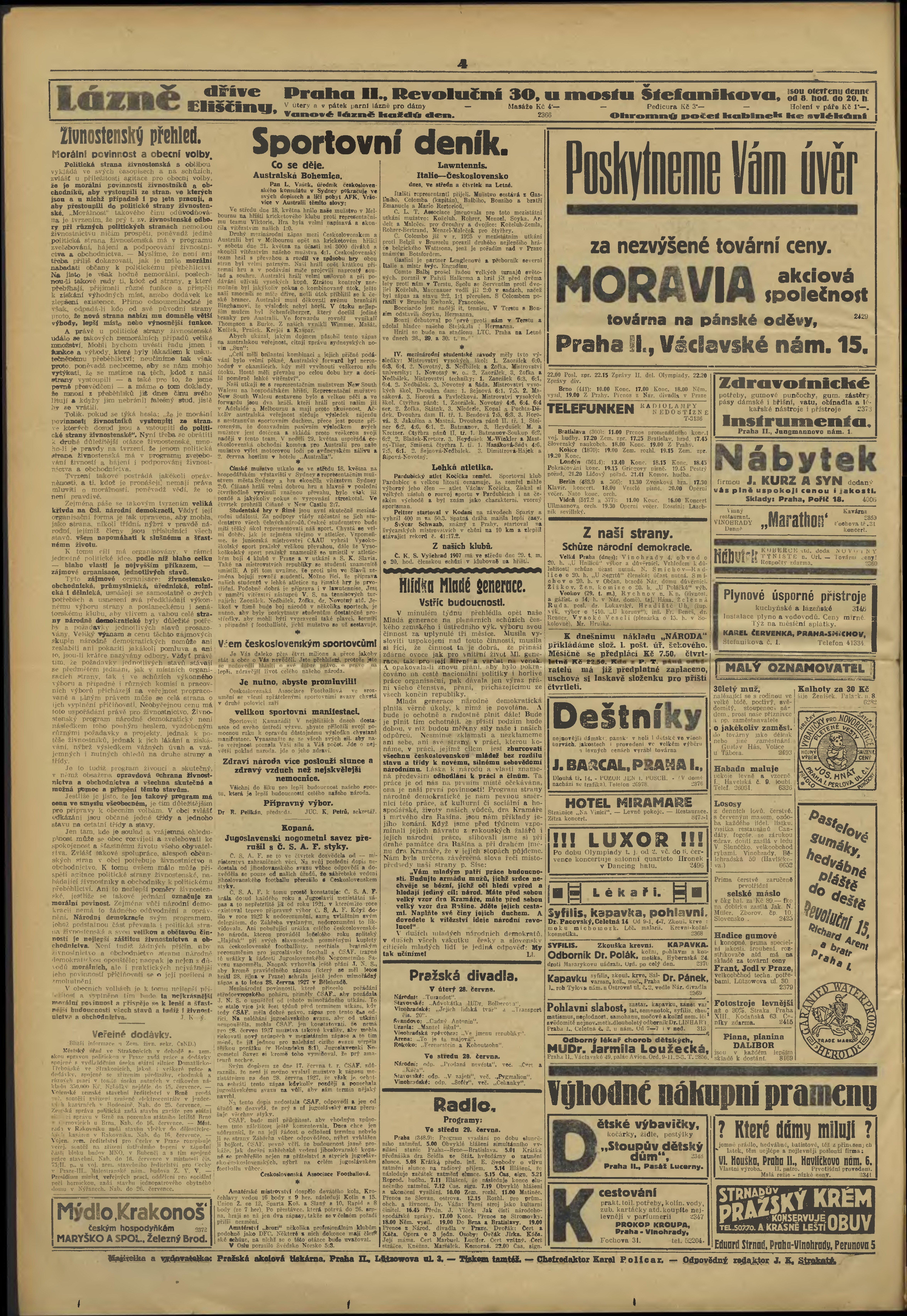 * Datum vydání výtisku: 28.6.1927 Číslo výtisku: 147 Poznámky k výtisku: večerní vydání; s. (1) - 2 poškozená předloha;