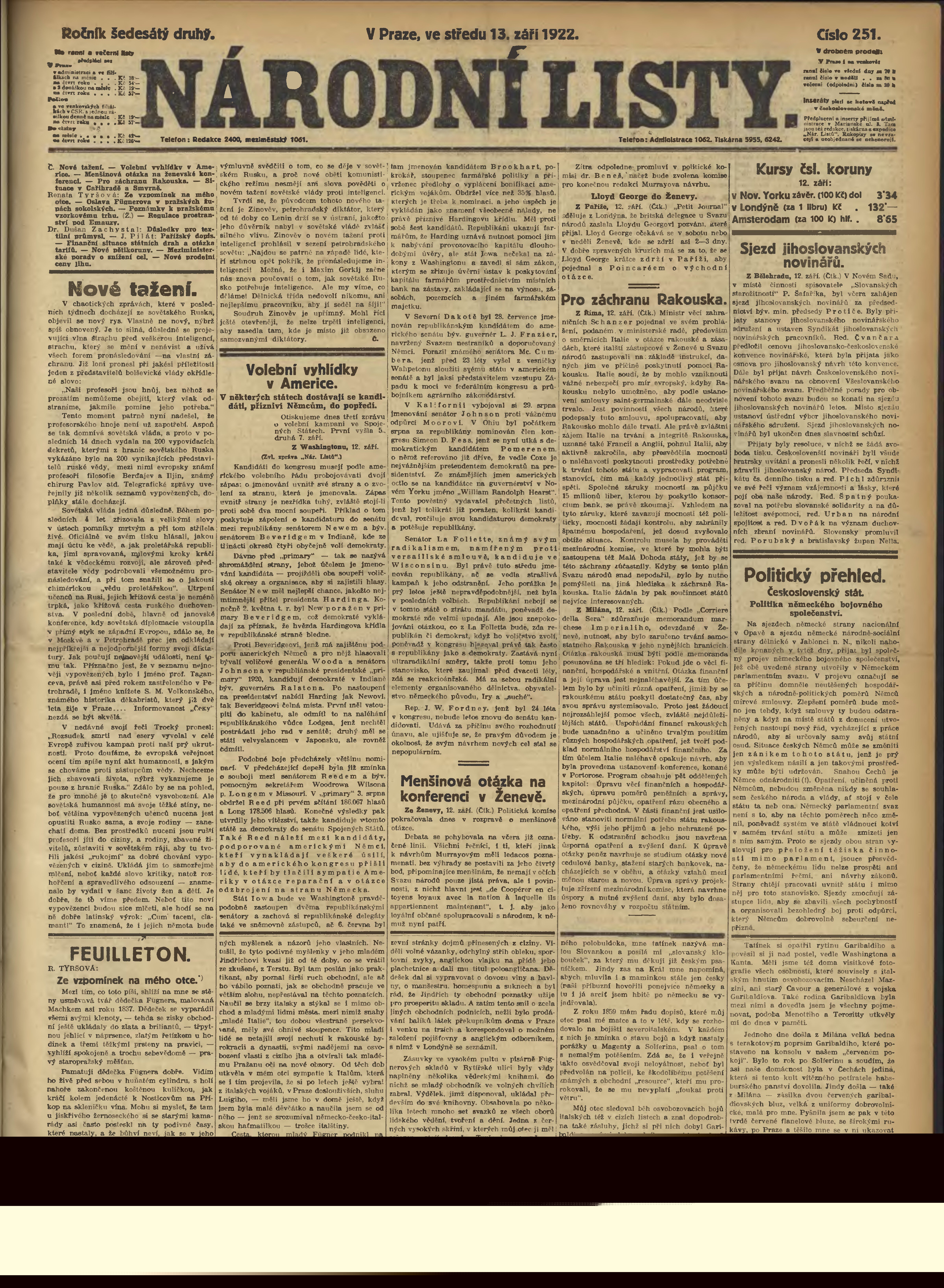 * Datum vydání výtisku: 13.9.1922 Číslo výtisku: 251