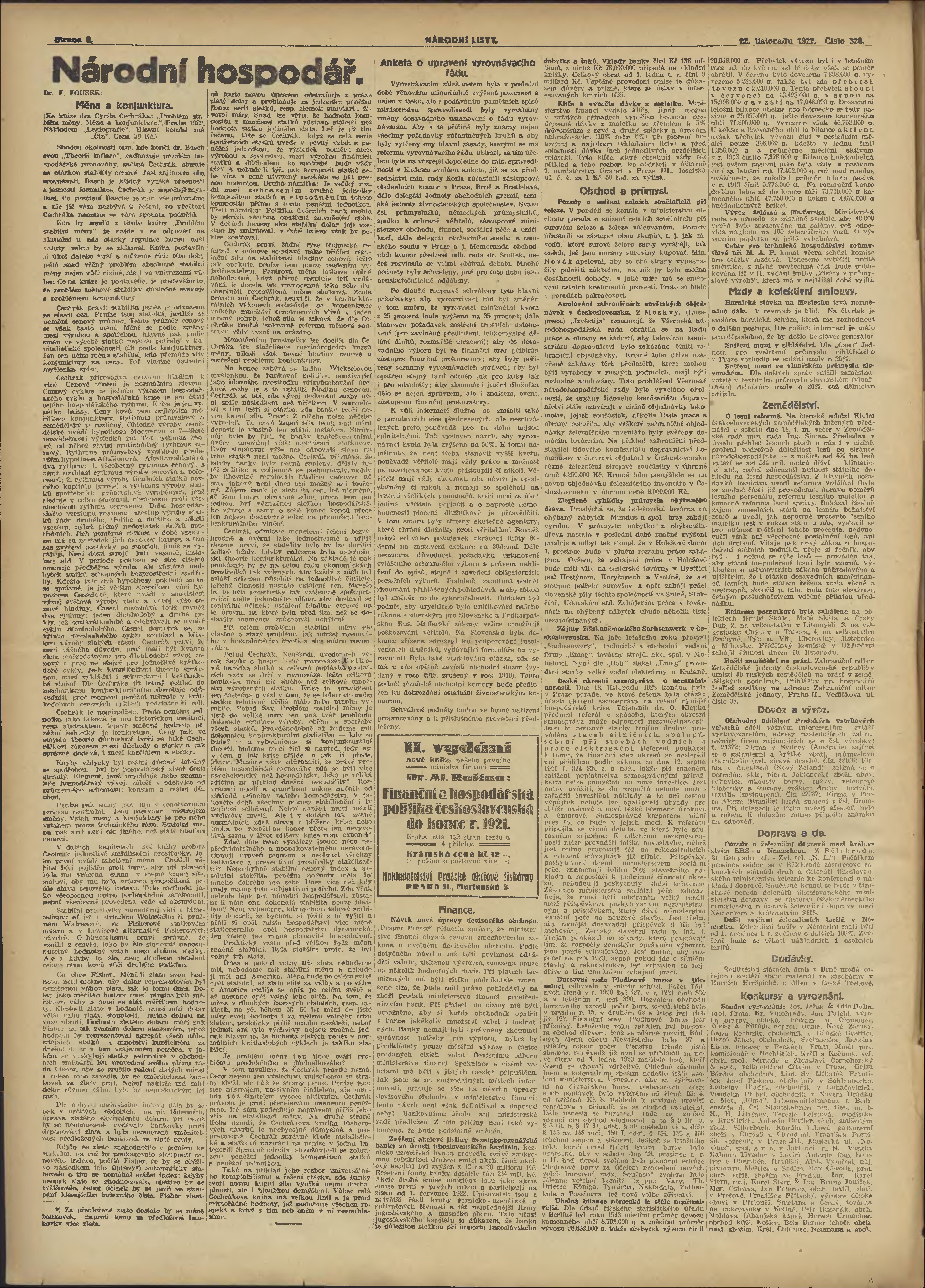 * Datum vydání výtisku: 22.11.1922 Číslo výtisku: 320