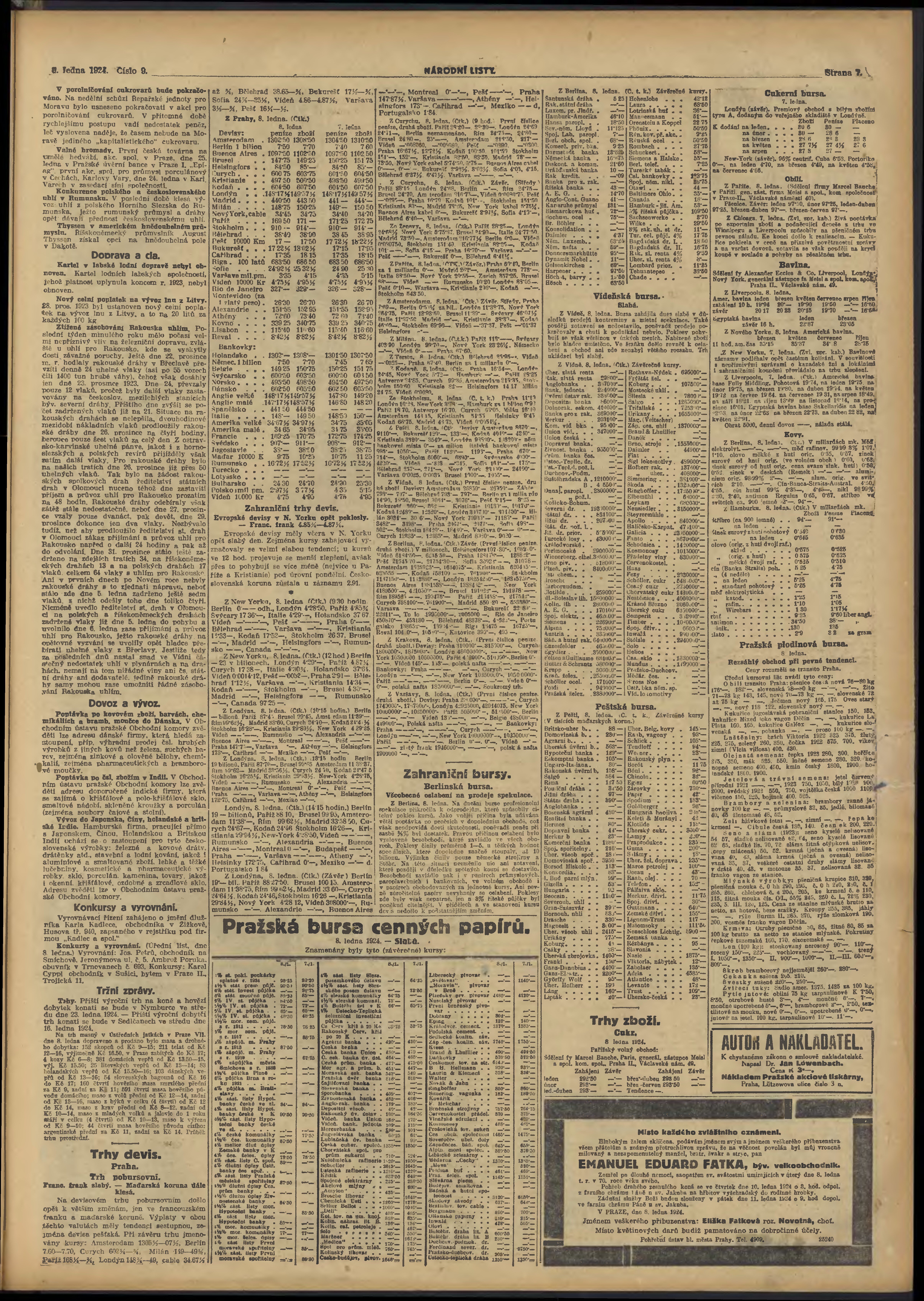 * Datum vydání výtisku: 9.1.1924 Číslo výtisku: 9