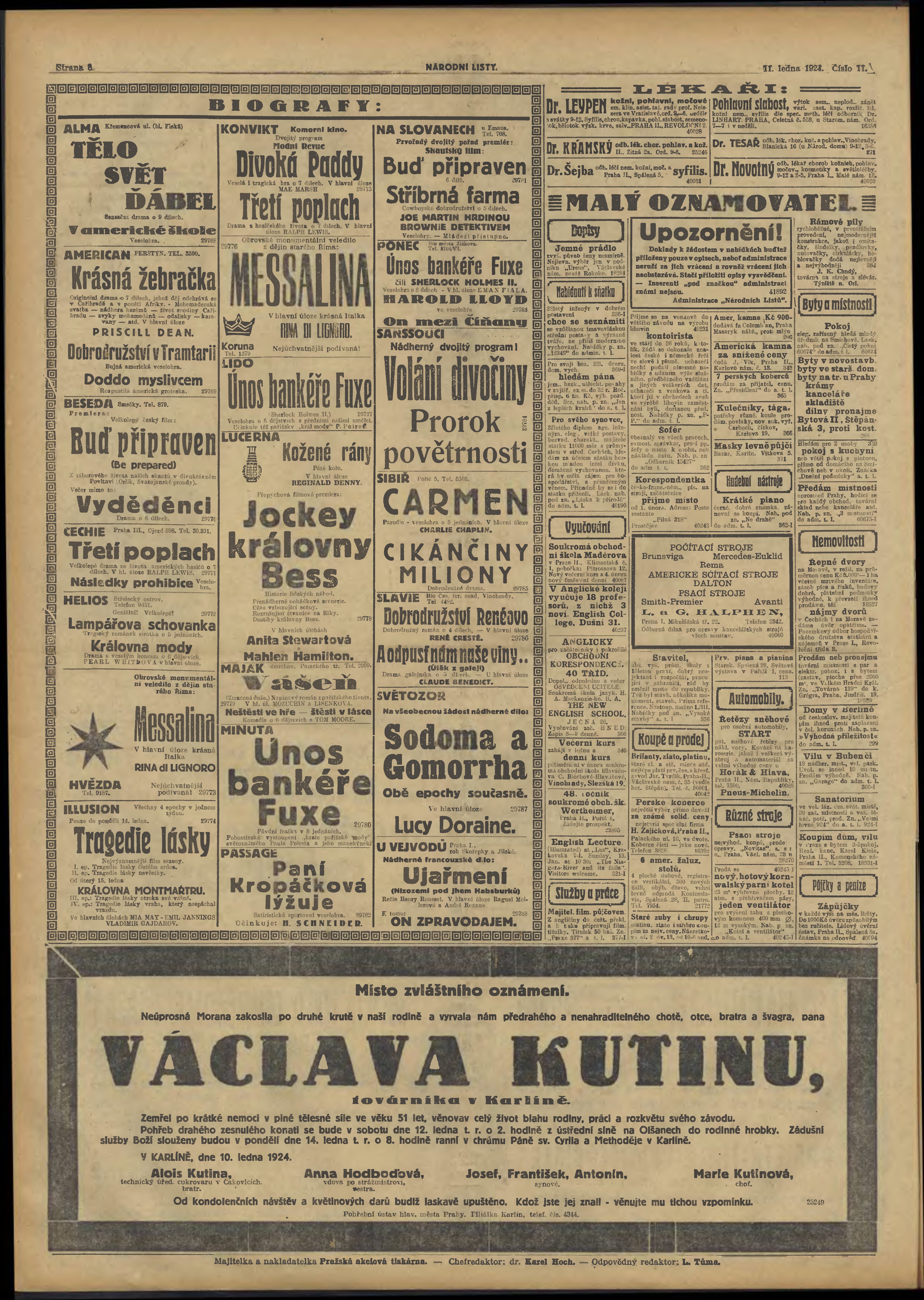 * Datum vydání výtisku: 11.1.1924 Číslo výtisku: 11