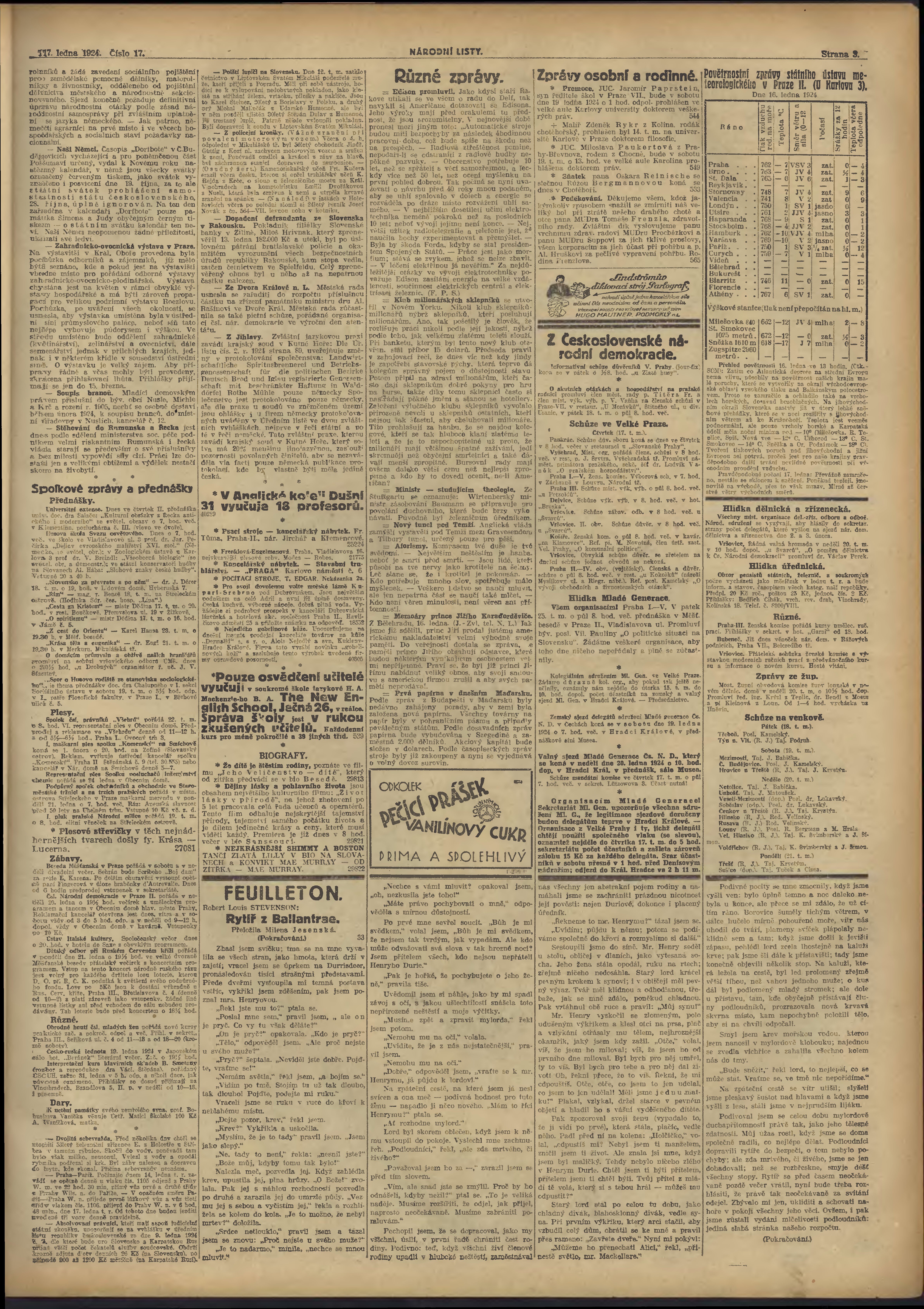 * Datum vydání výtisku: 17.1.1924 Číslo výtisku: 17