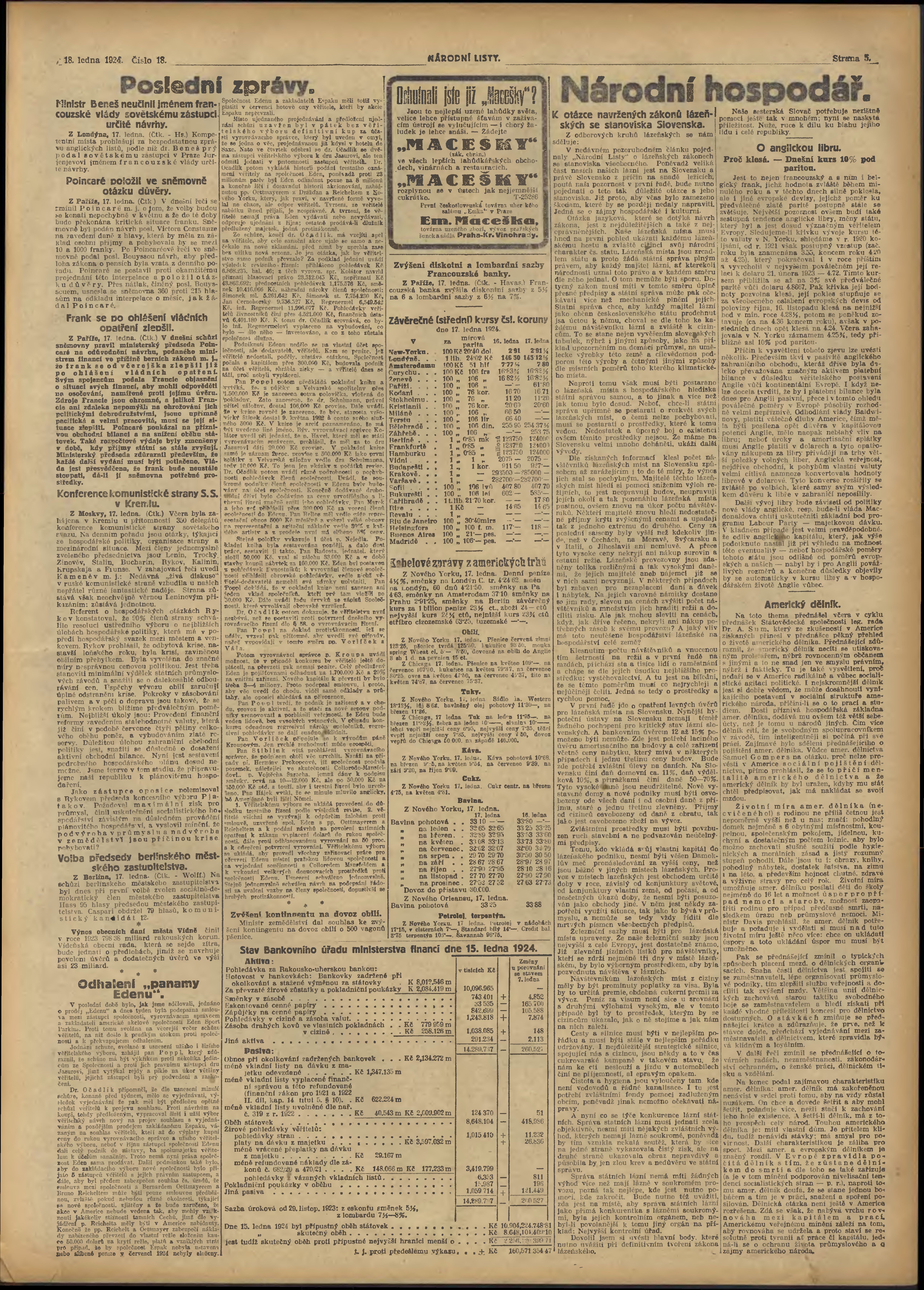 * Datum vydání výtisku: 18.1.1924 Číslo výtisku: 18