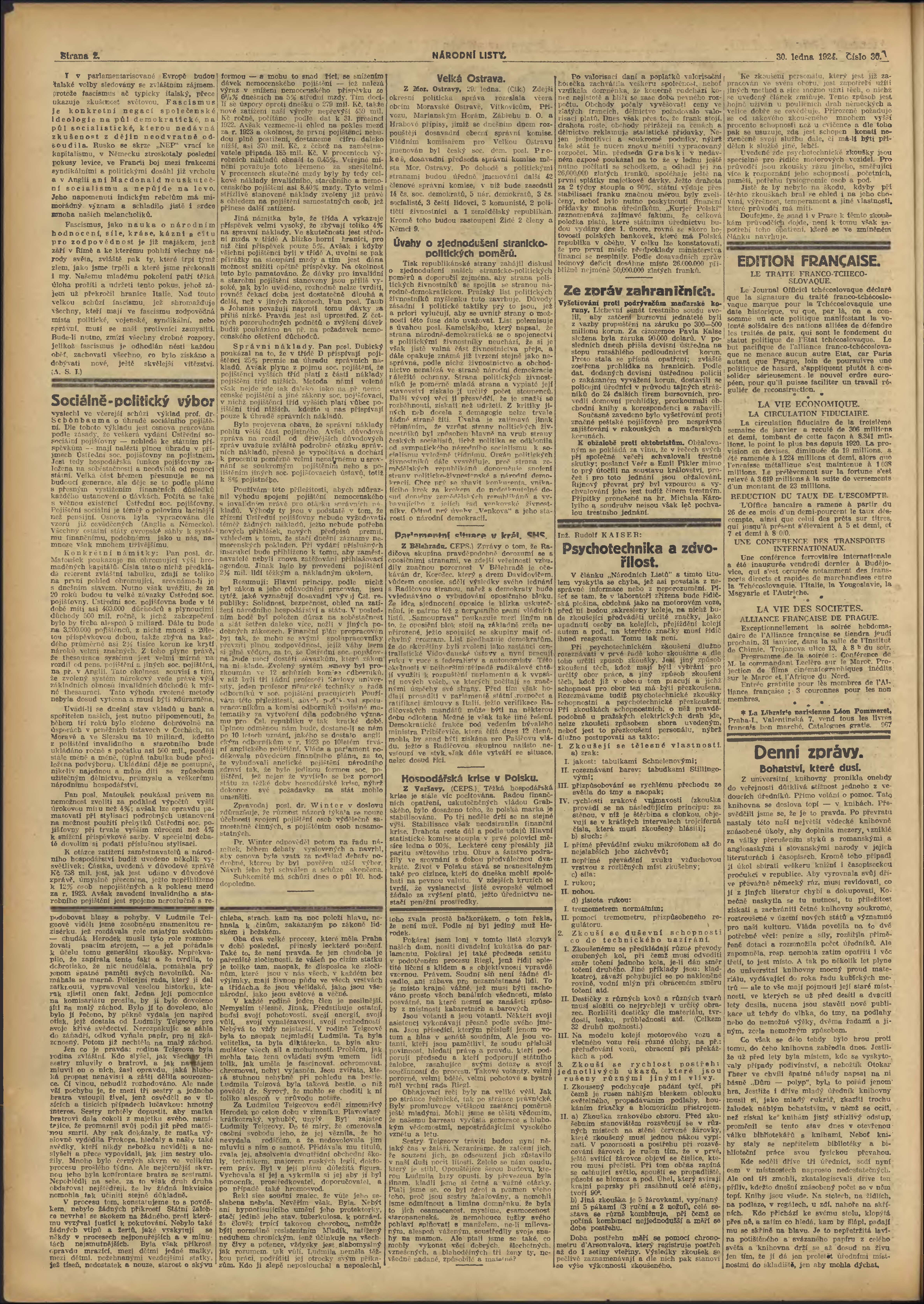 * Datum vydání výtisku: 30.1.1924 Číslo výtisku: 30