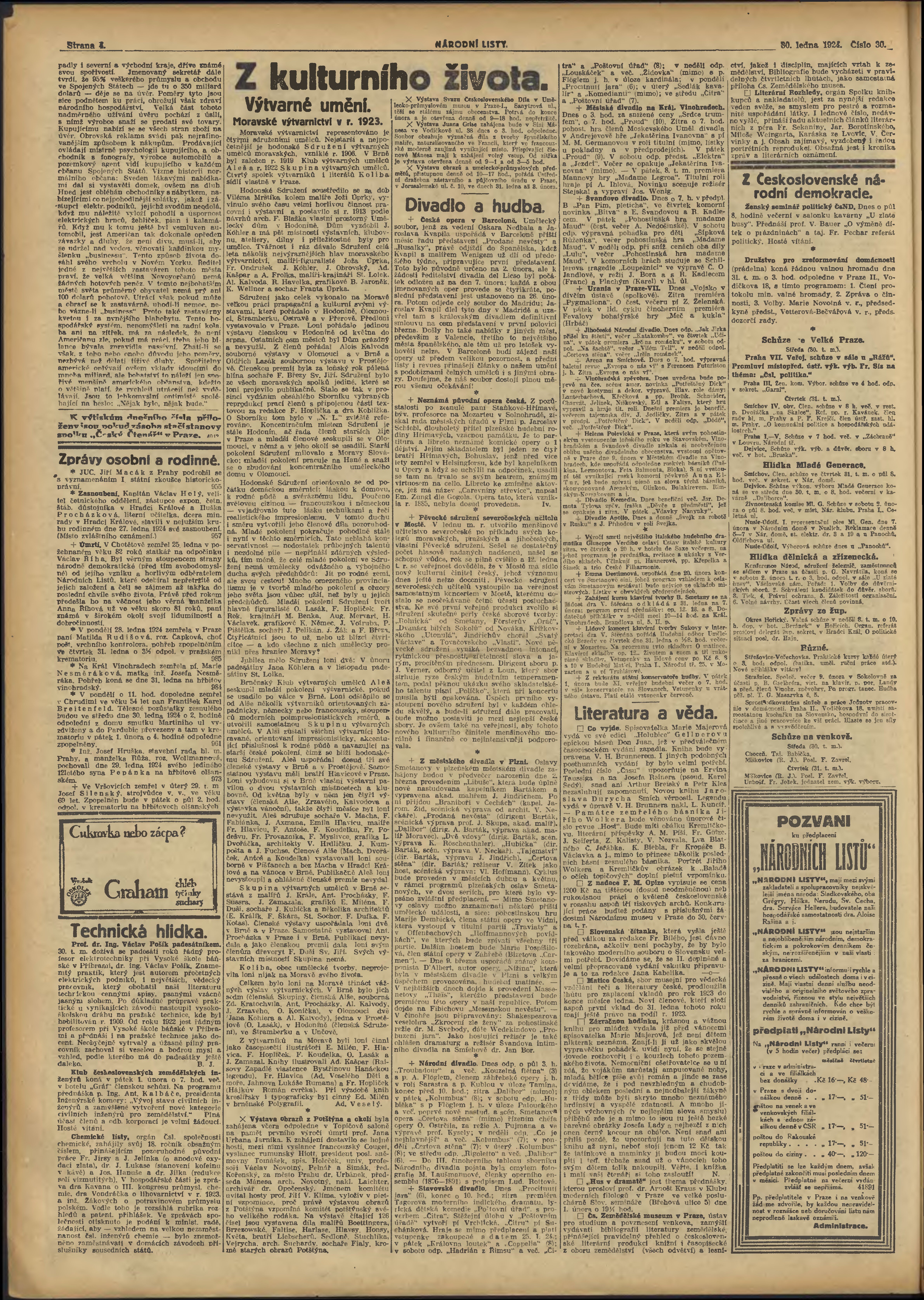 * Datum vydání výtisku: 30.1.1924 Číslo výtisku: 30