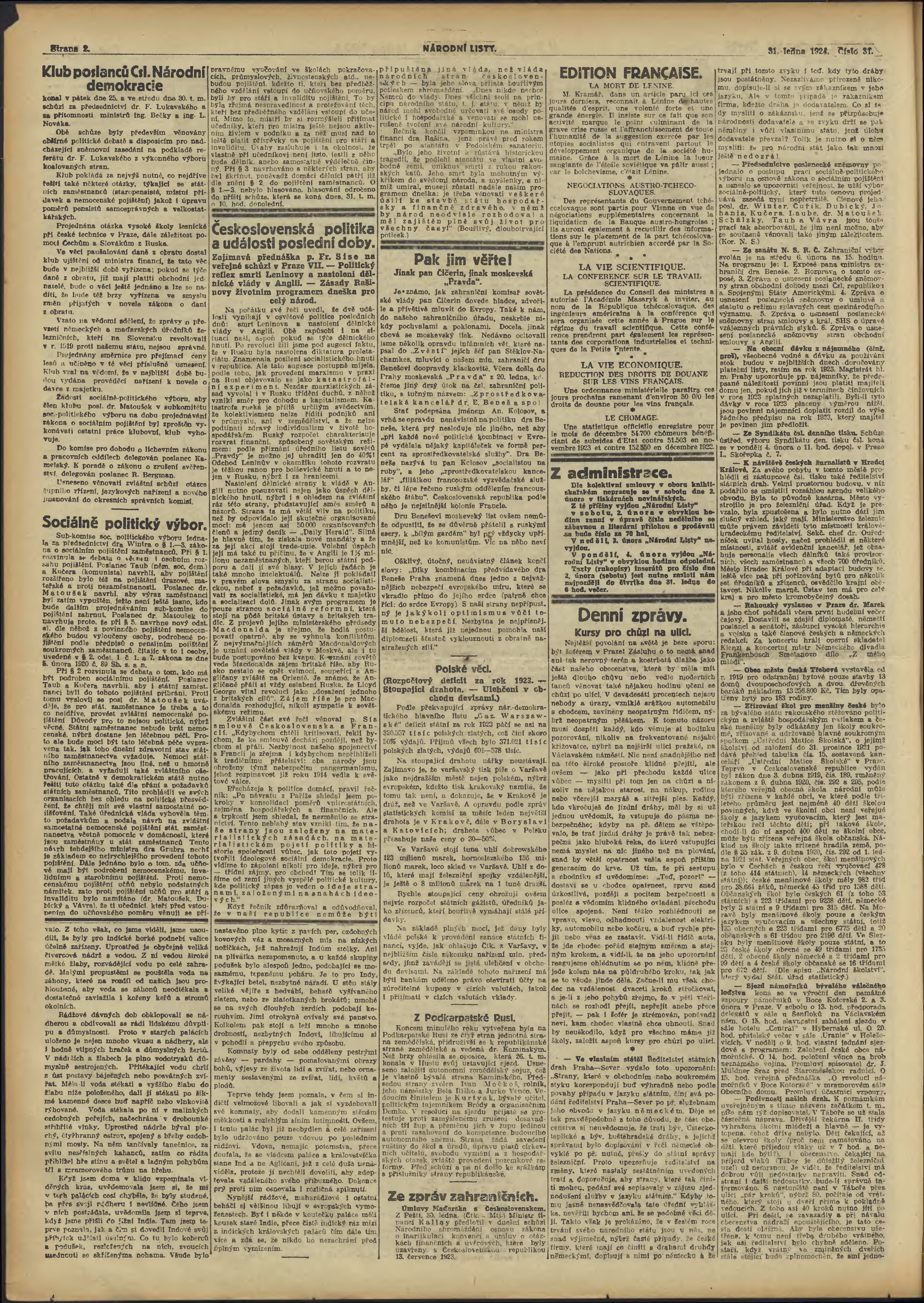 * Datum vydání výtisku: 31.1.1924 Číslo výtisku: 31