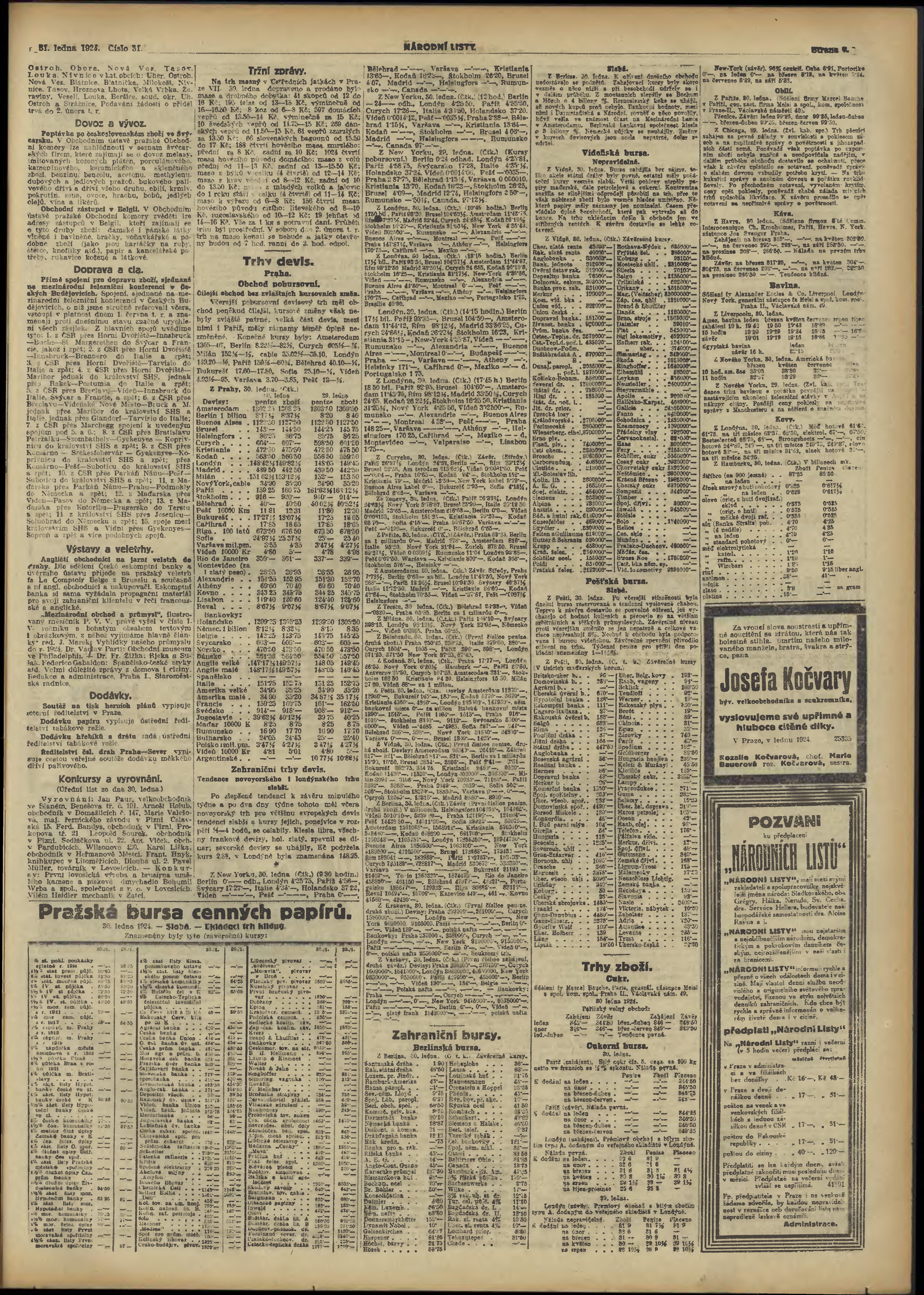 * Datum vydání výtisku: 31.1.1924 Číslo výtisku: 31