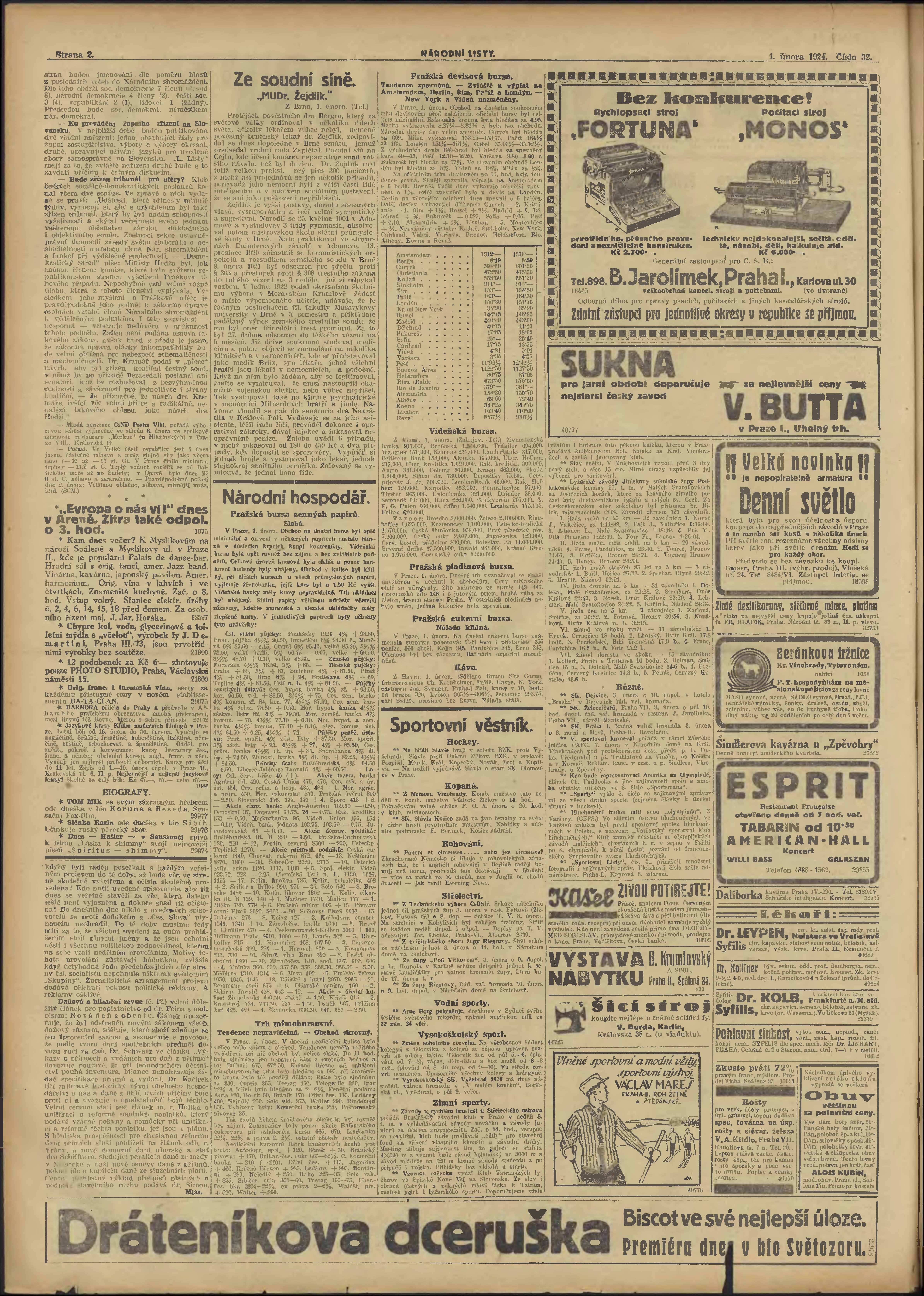 * Datum vydání výtisku: 1.2.1924 Číslo výtisku: 32 Poznámky k výtisku: večerní vydání;