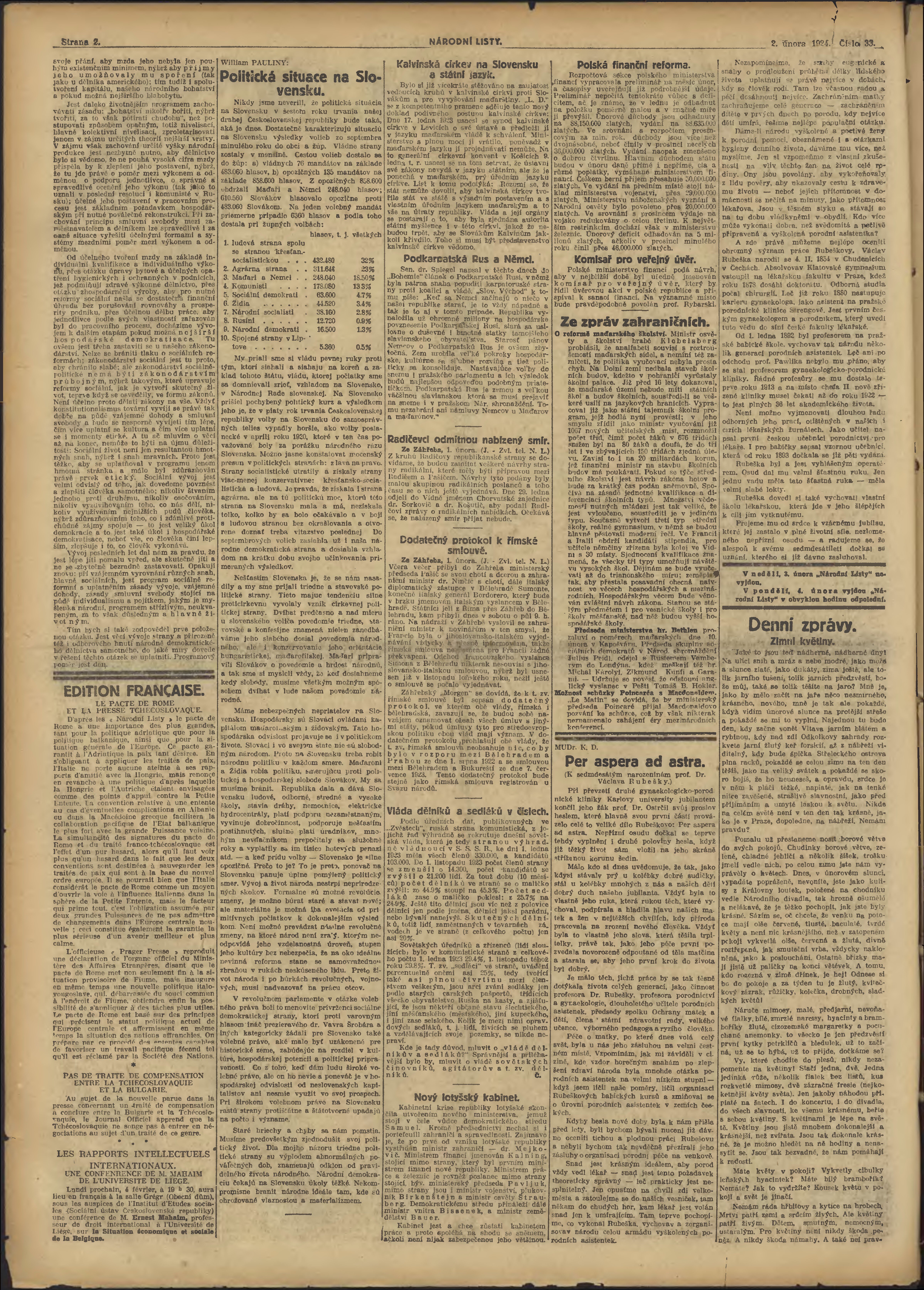 * Datum vydání výtisku: 2.2.1924 Číslo výtisku: 33