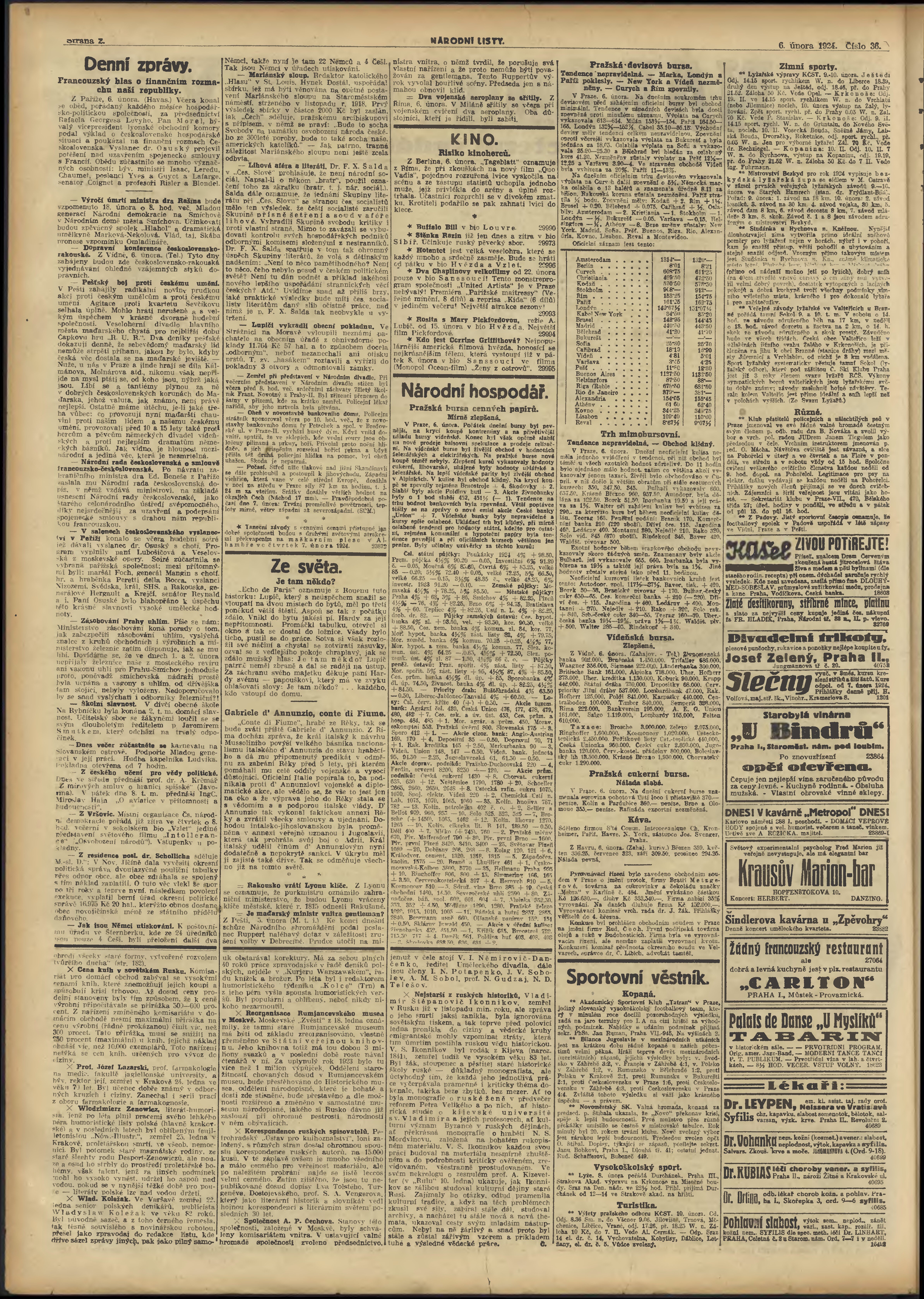 * Datum vydání výtisku: 6.2.1924 Číslo výtisku: 36 Poznámky k výtisku: večerní vydání;