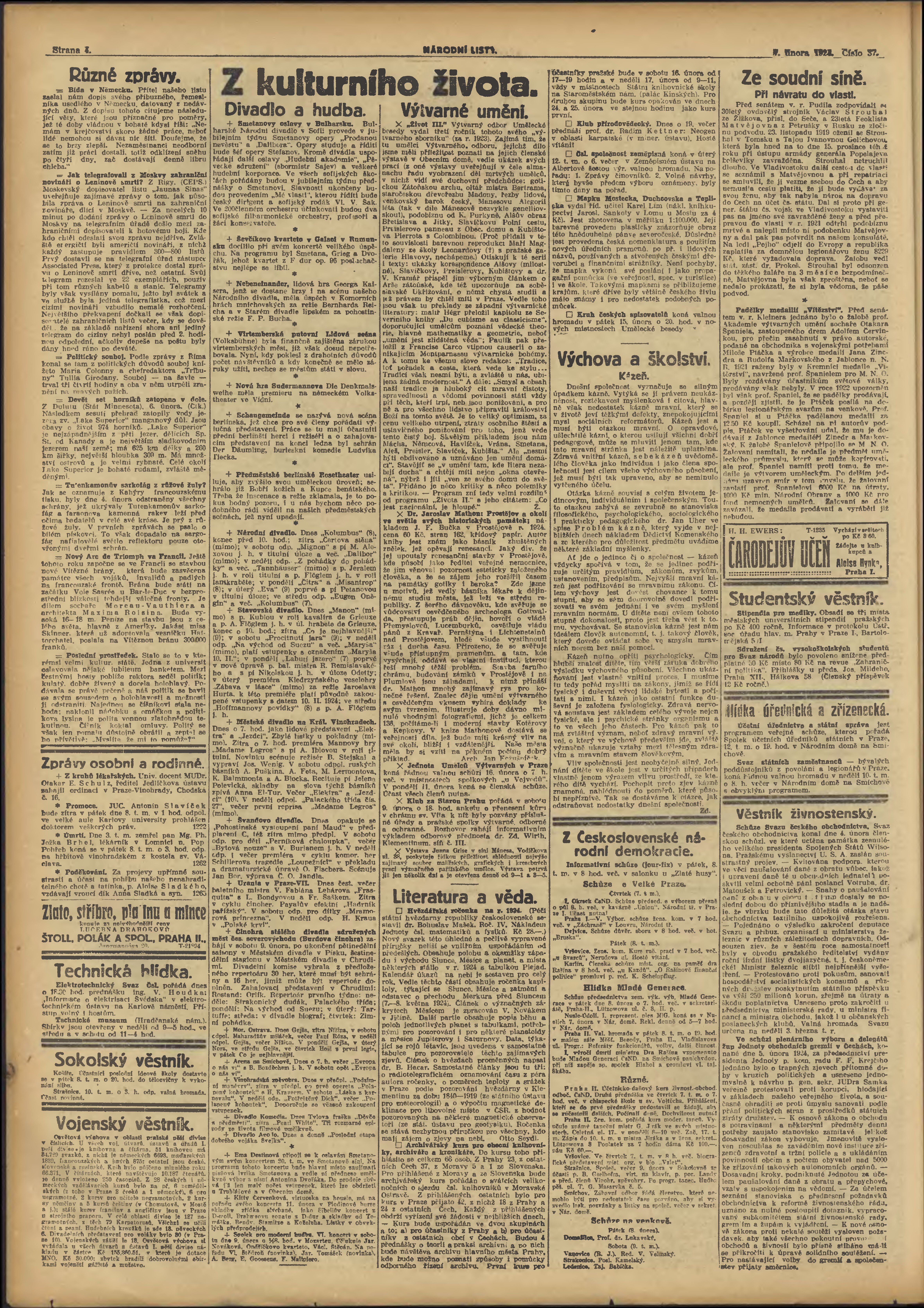 * Datum vydání výtisku: 7.2.1924 Číslo výtisku: 37