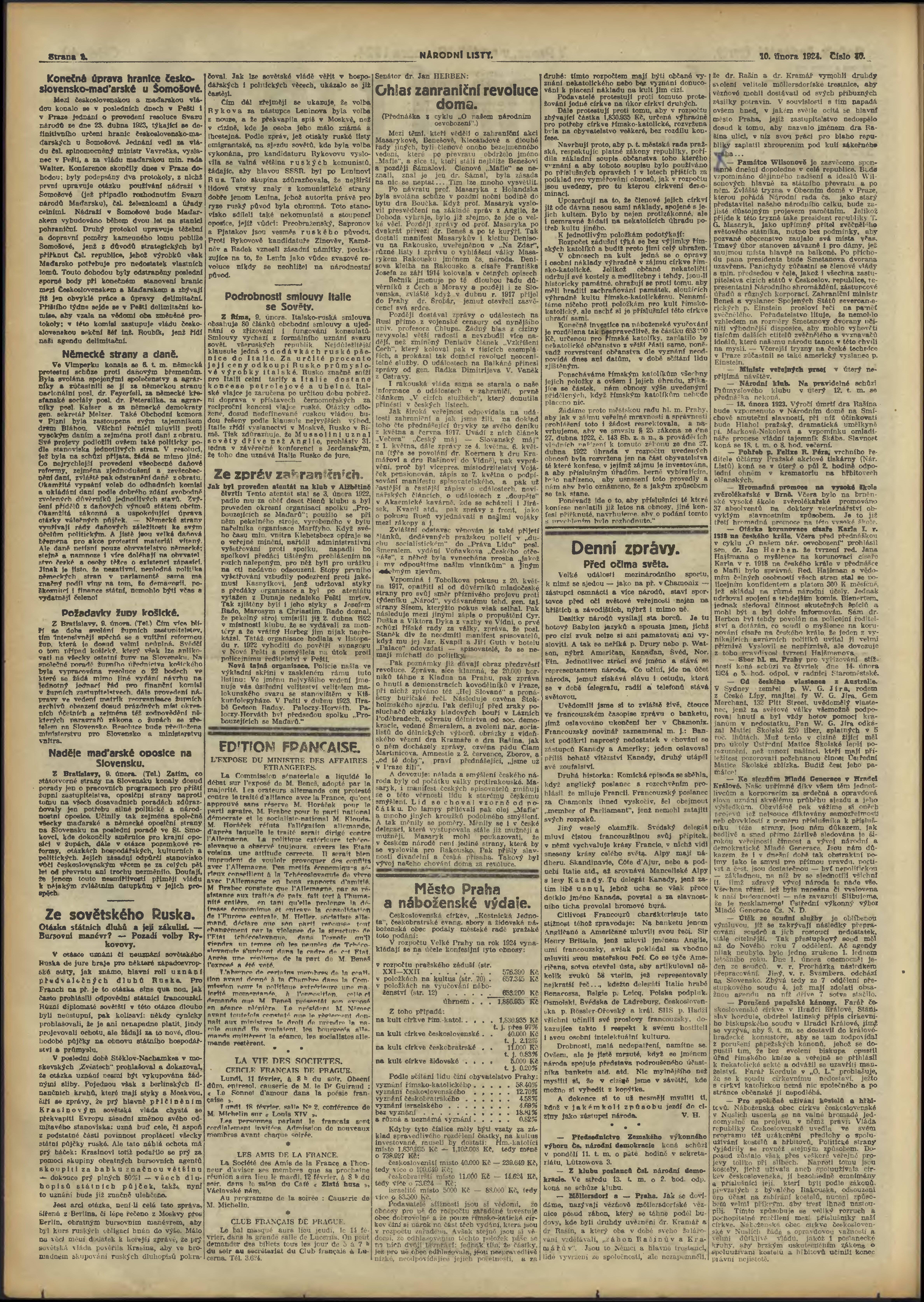 * Datum vydání výtisku: 10.2.1924 Číslo výtisku: 40