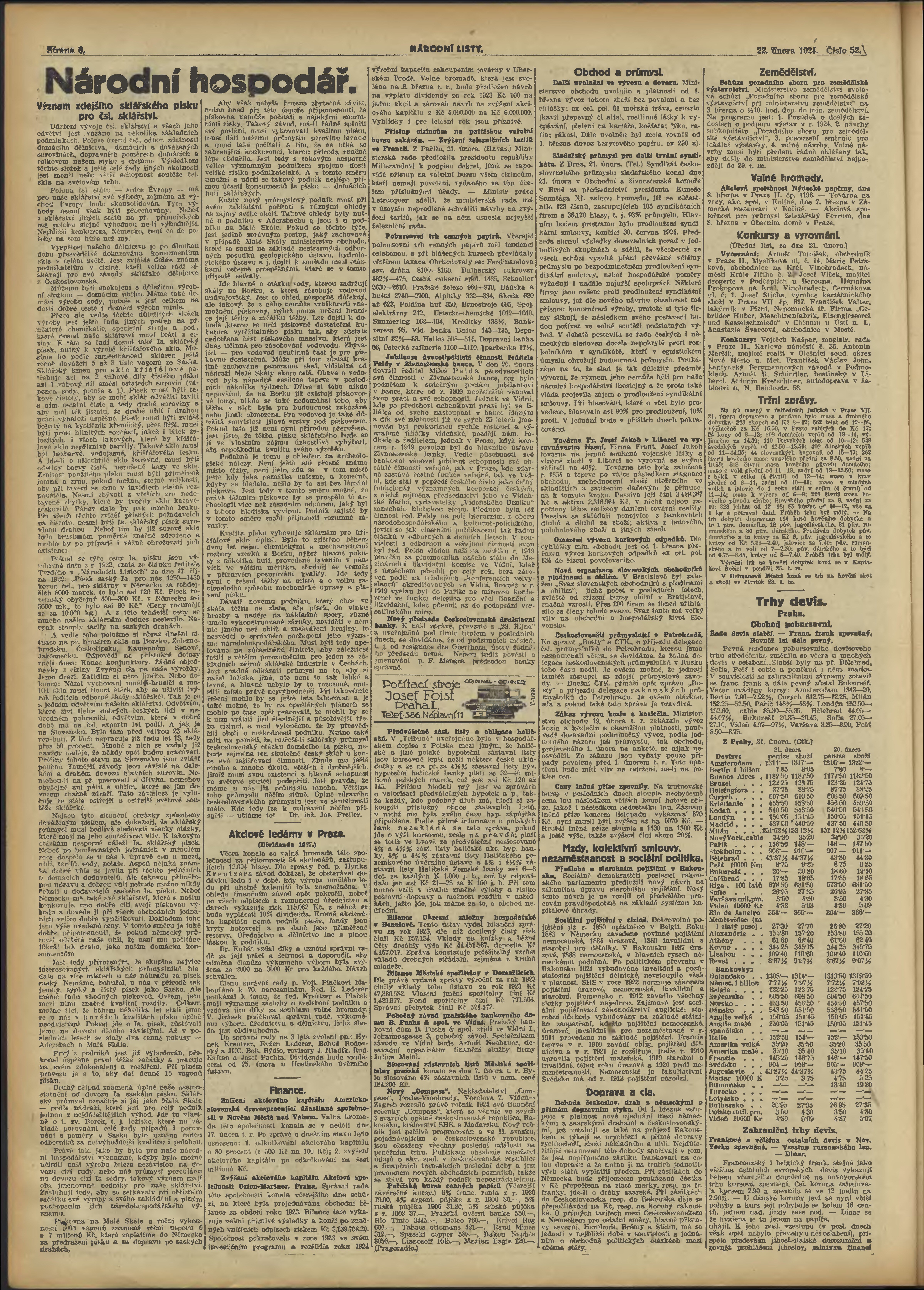 * Datum vydání výtisku: 22.2.1924 Číslo výtisku: 52