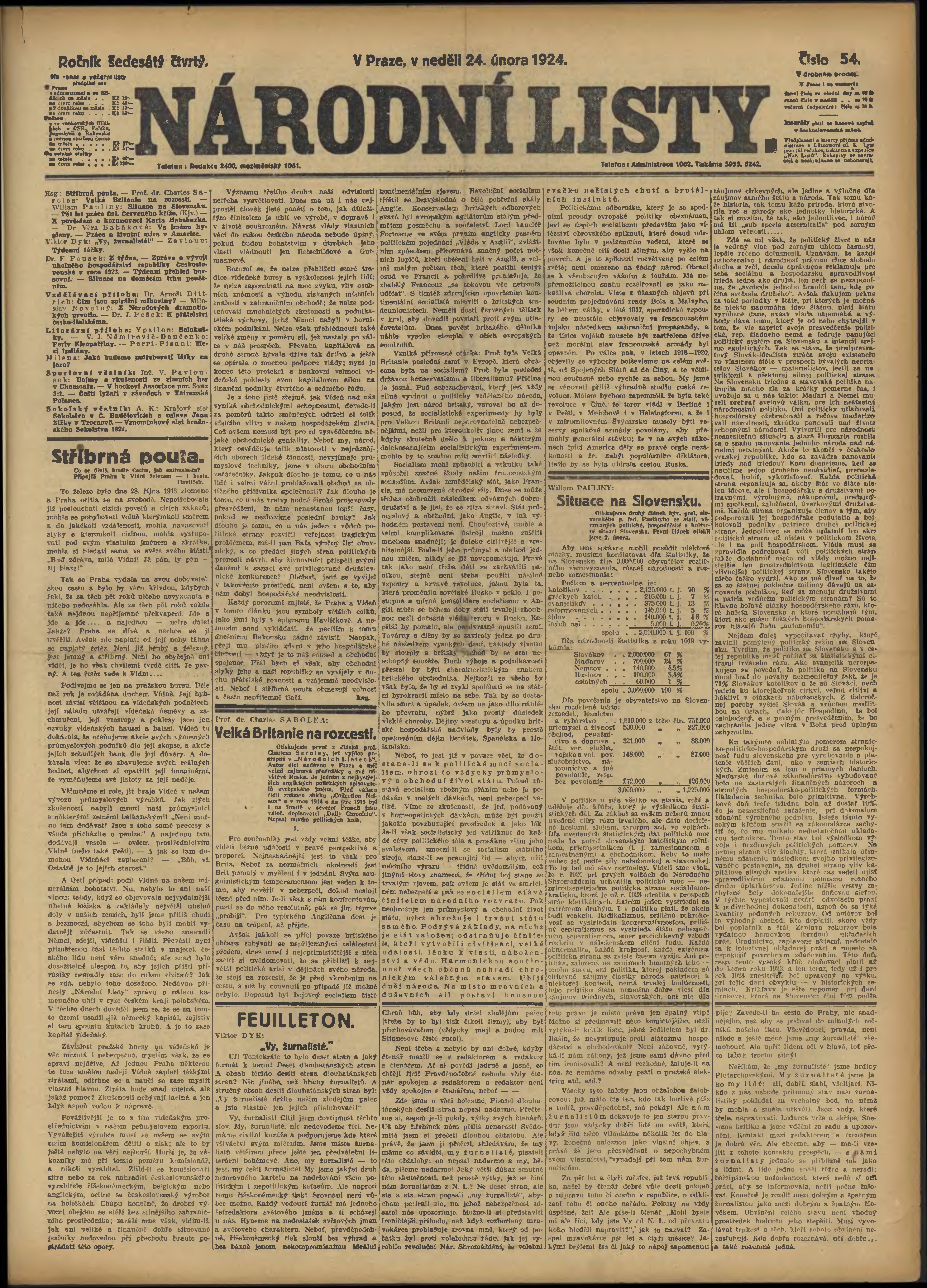 * Datum vydání výtisku: 24.2.1924 Číslo výtisku: 54