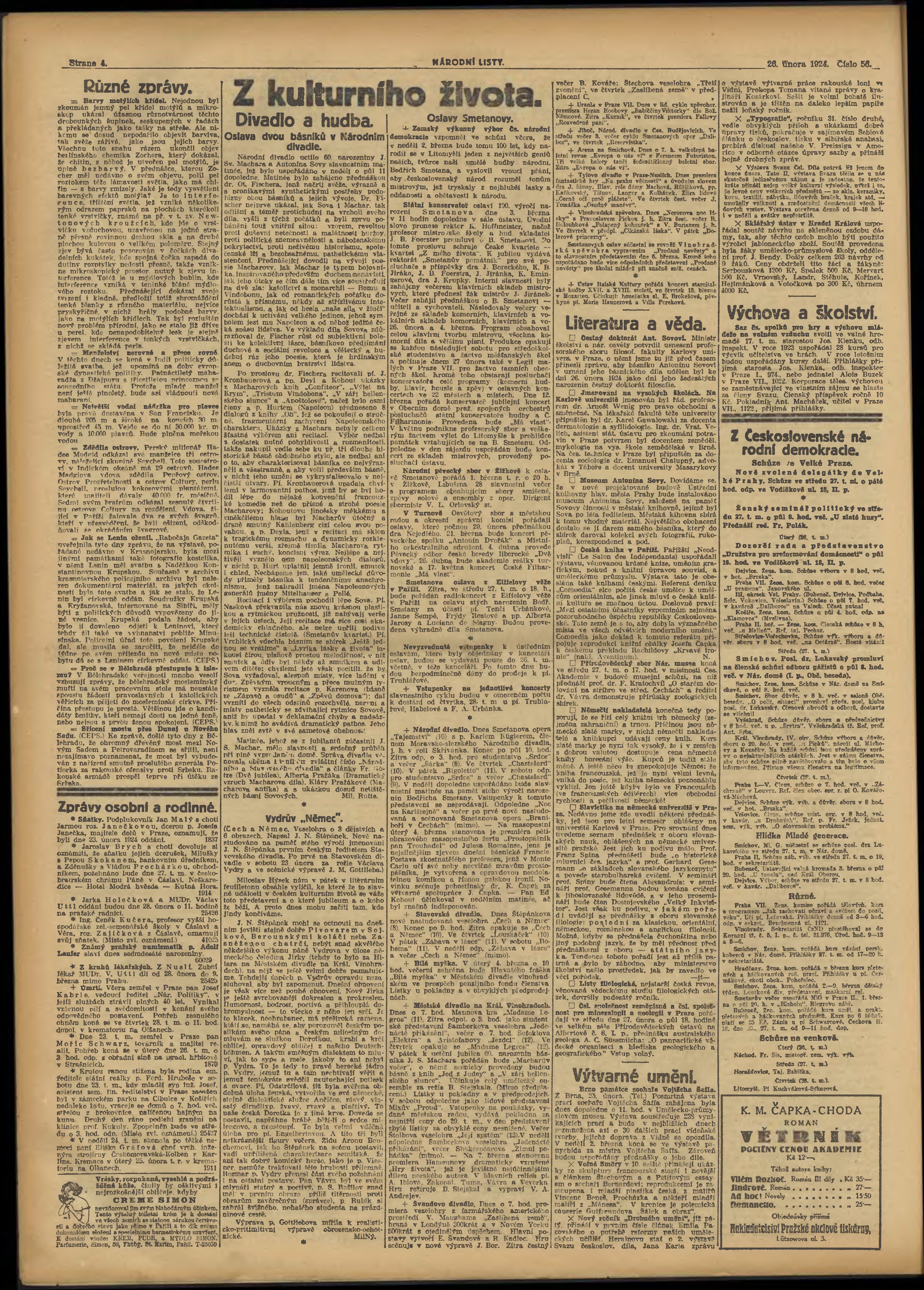 * Datum vydání výtisku: 26.2.1924 Číslo výtisku: 56