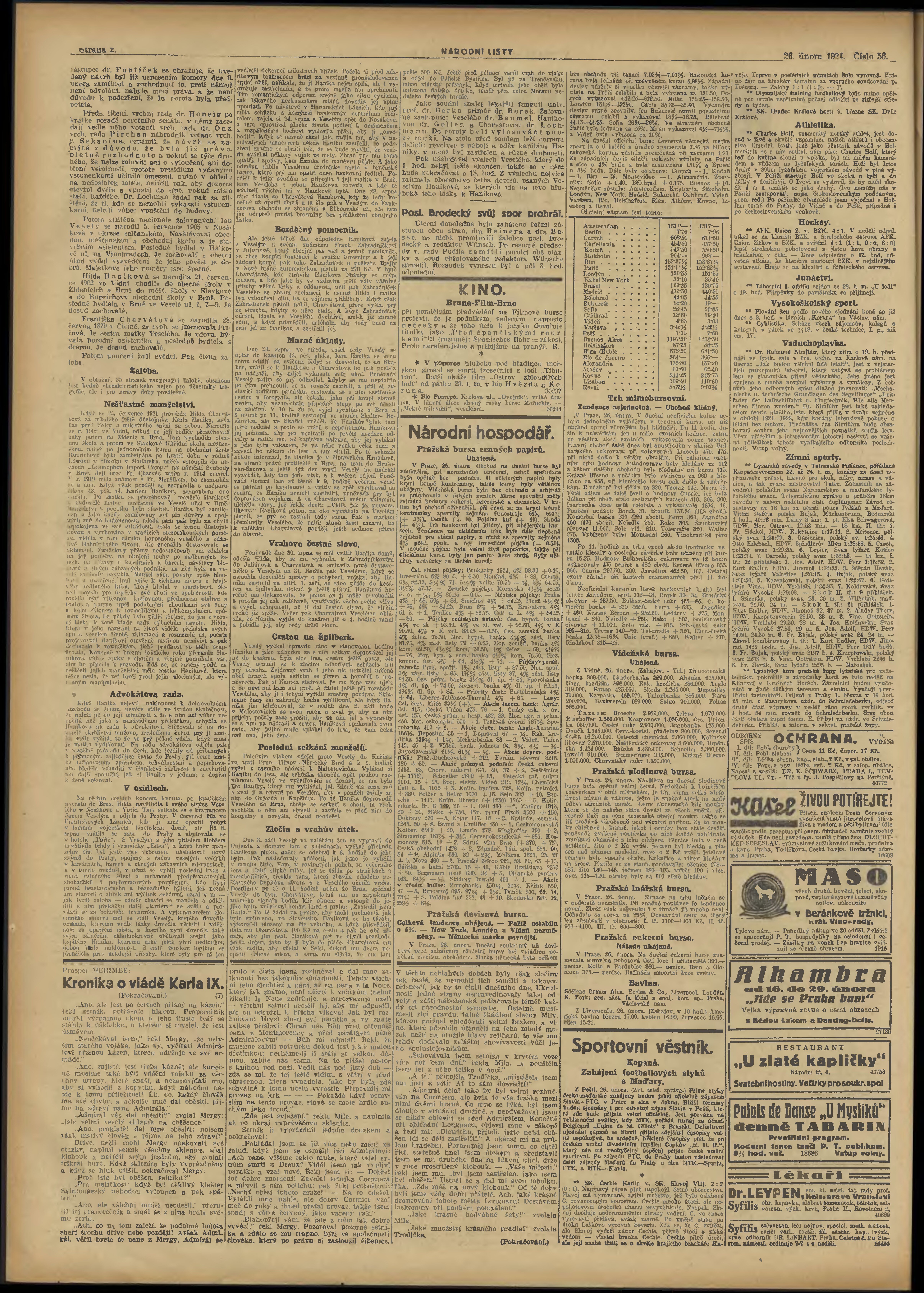 * Datum vydání výtisku: 26.2.1924 Číslo výtisku: 56 Poznámky k výtisku: večerní vydání;