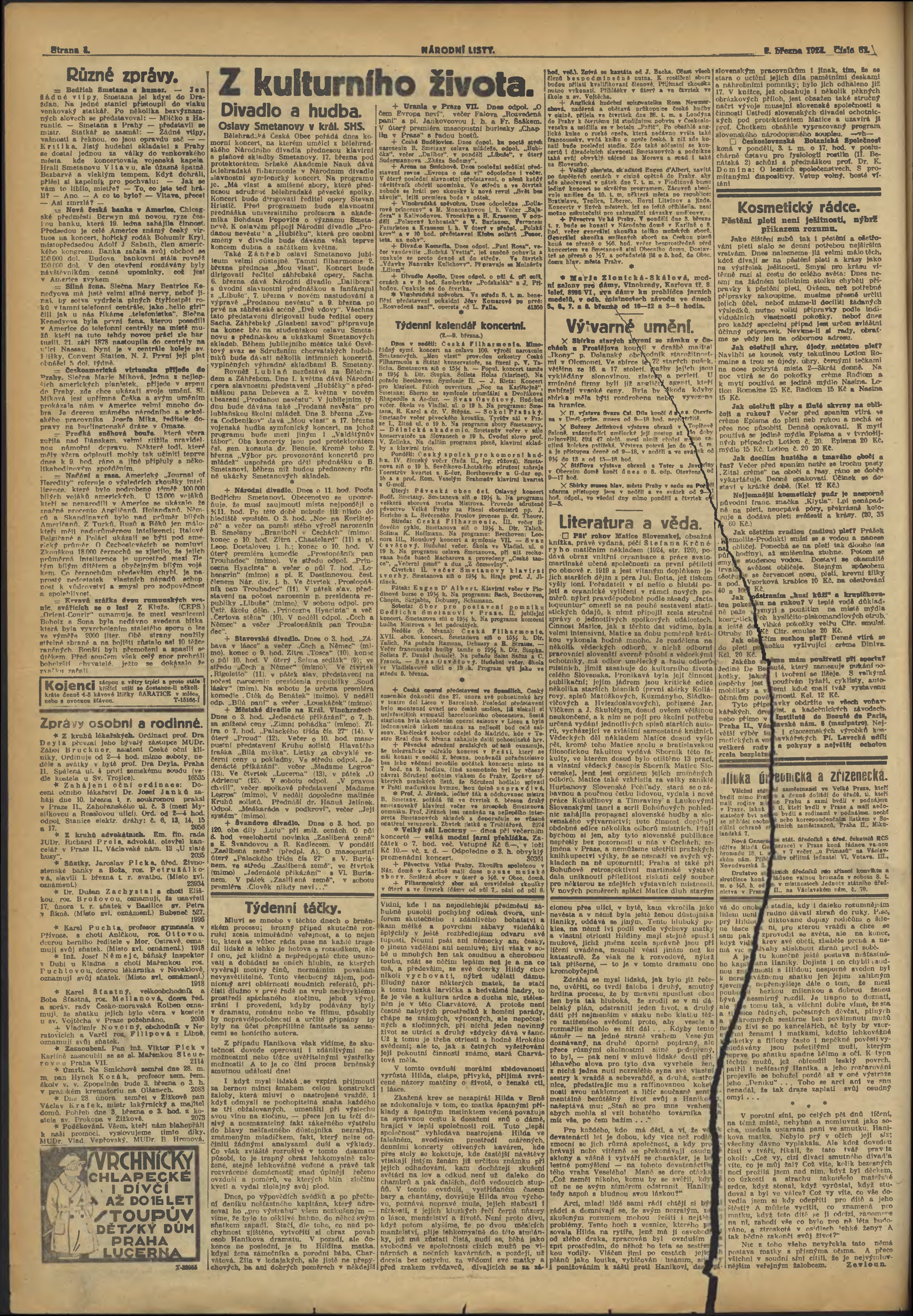 * Datum vydání výtisku: 2.3.1924 Číslo výtisku: 61 Poznámky k výtisku: s. 4, (9) - 10 poškozená předloha;