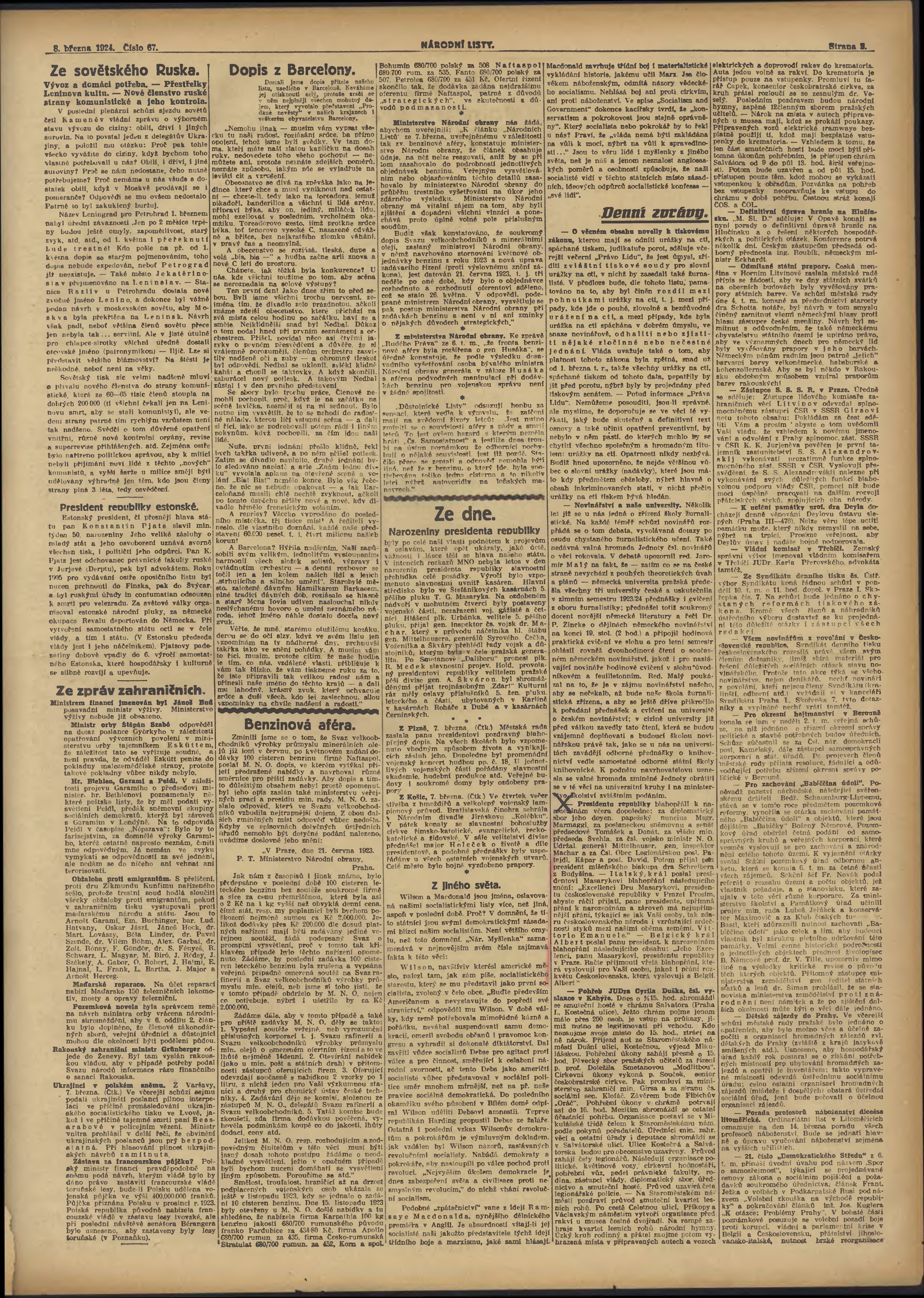 * Datum vydání výtisku: 8.3.1924 Číslo výtisku: 67