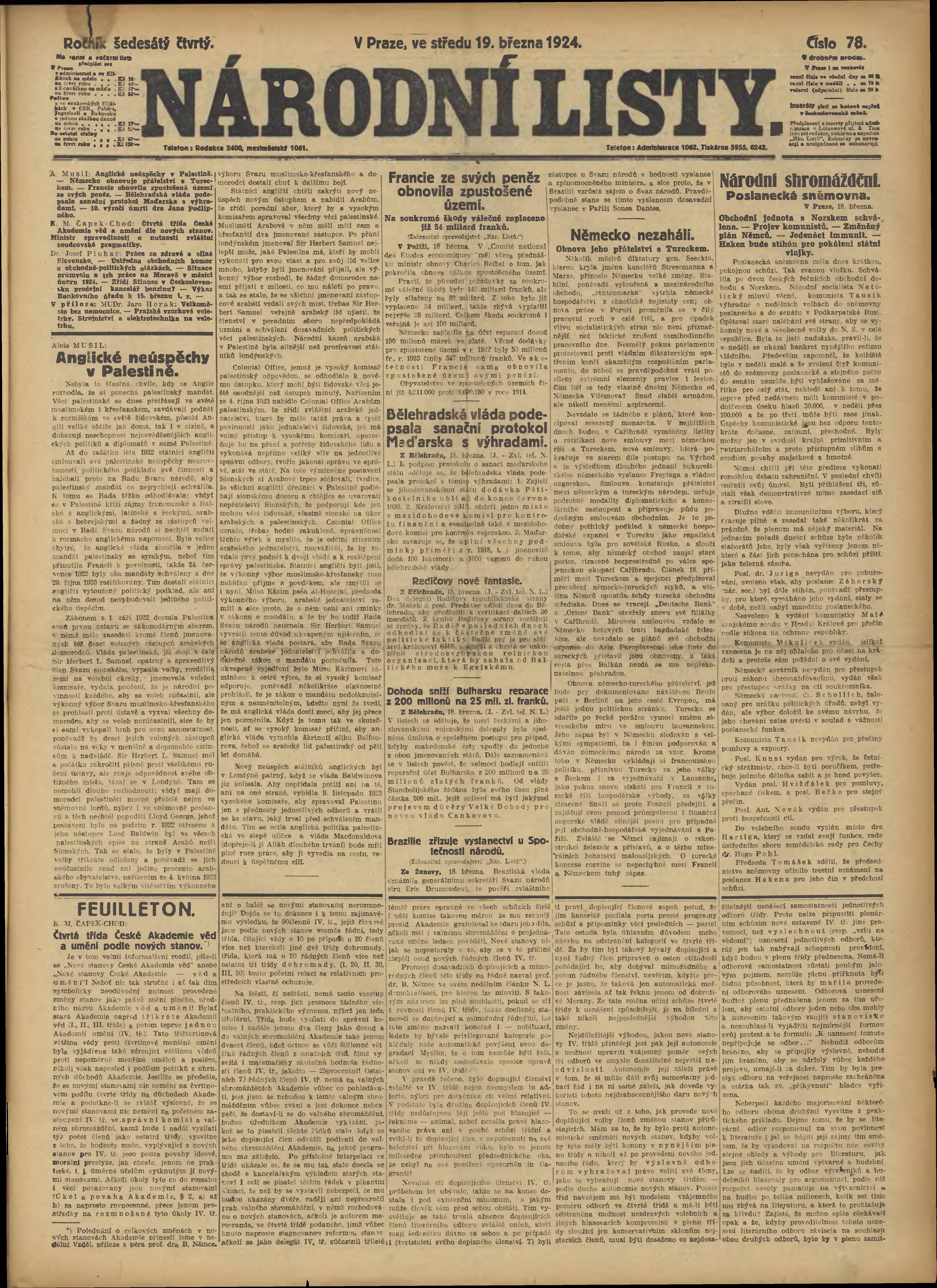 * Datum vydání výtisku: 19.3.1924 Číslo výtisku: 78