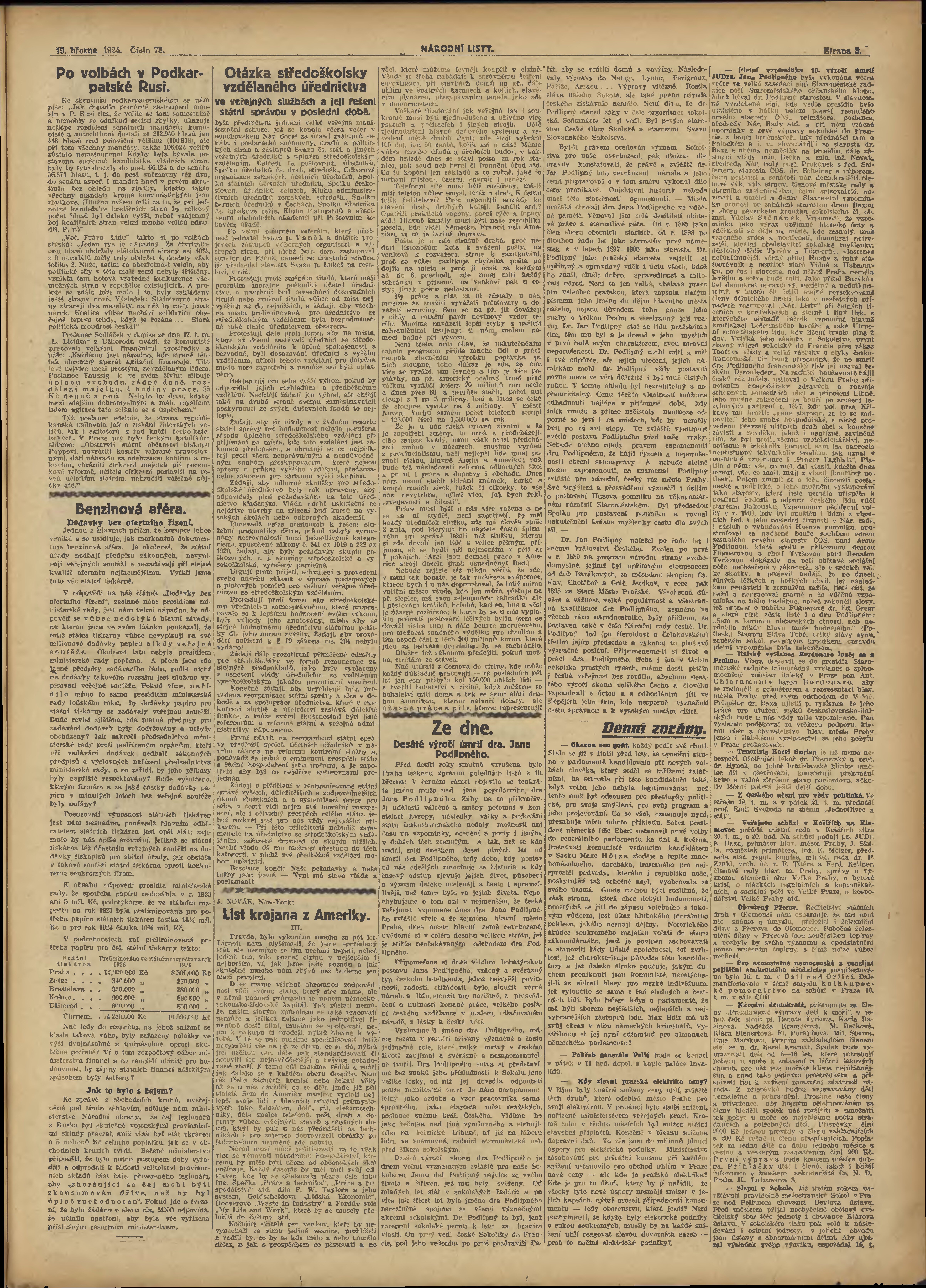 * Datum vydání výtisku: 19.3.1924 Číslo výtisku: 78