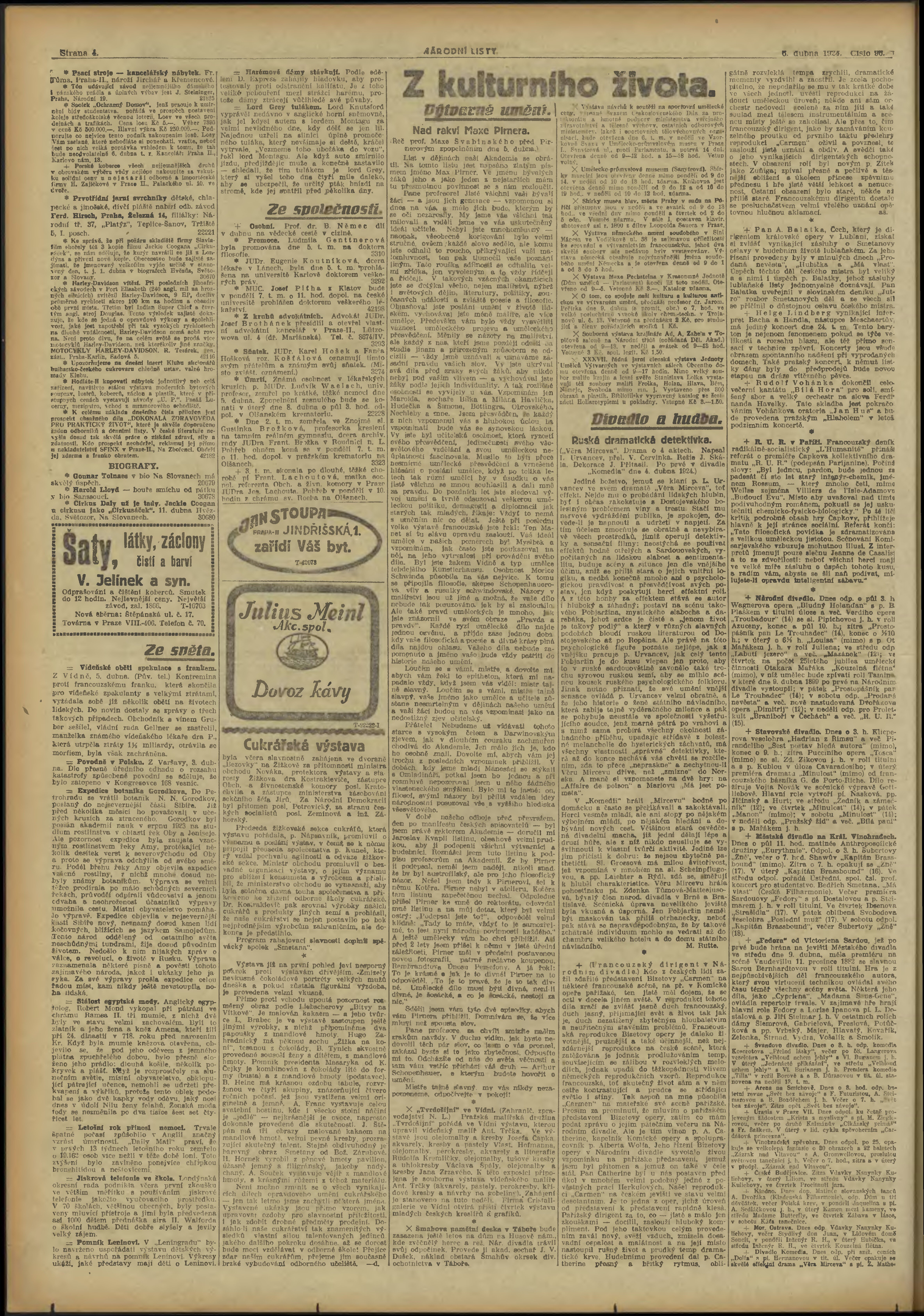 * Datum vydání výtisku: 6.4.1924 Číslo výtisku: 96