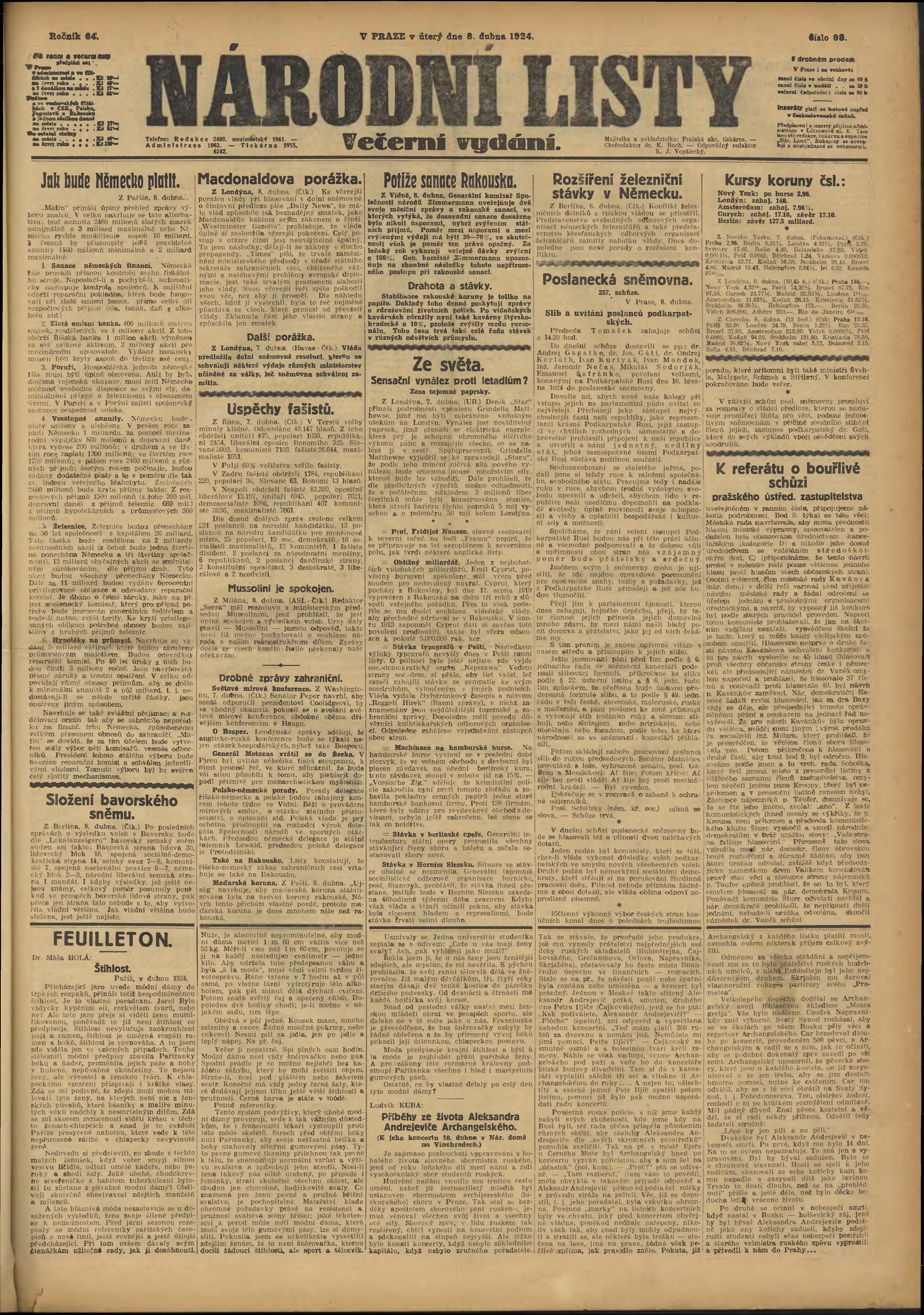 * Datum vydání výtisku: 8.4.1924 Číslo výtisku: 98 Poznámky k výtisku: večerní vydání;