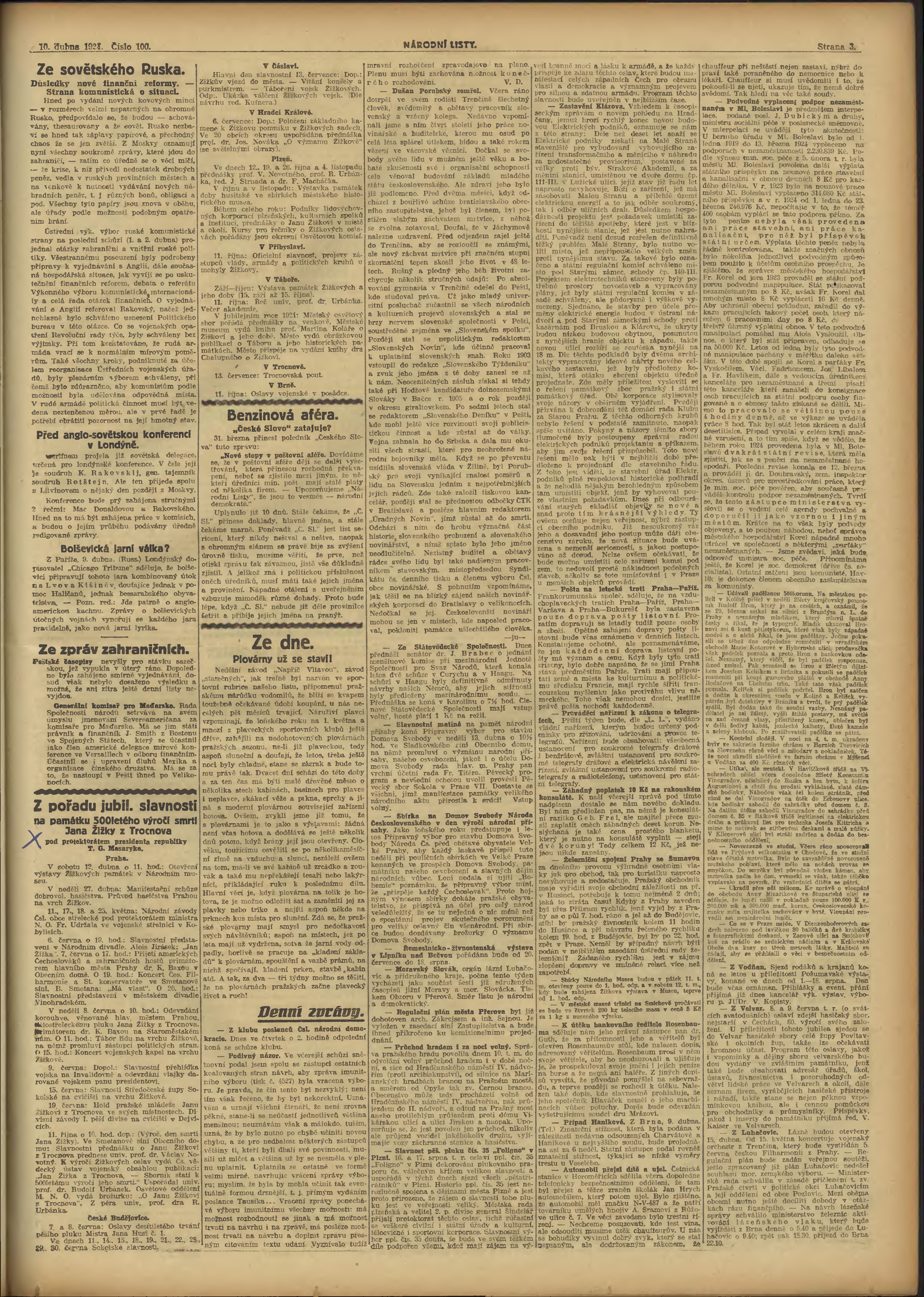 * Datum vydání výtisku: 10.4.1924 Číslo výtisku: 100