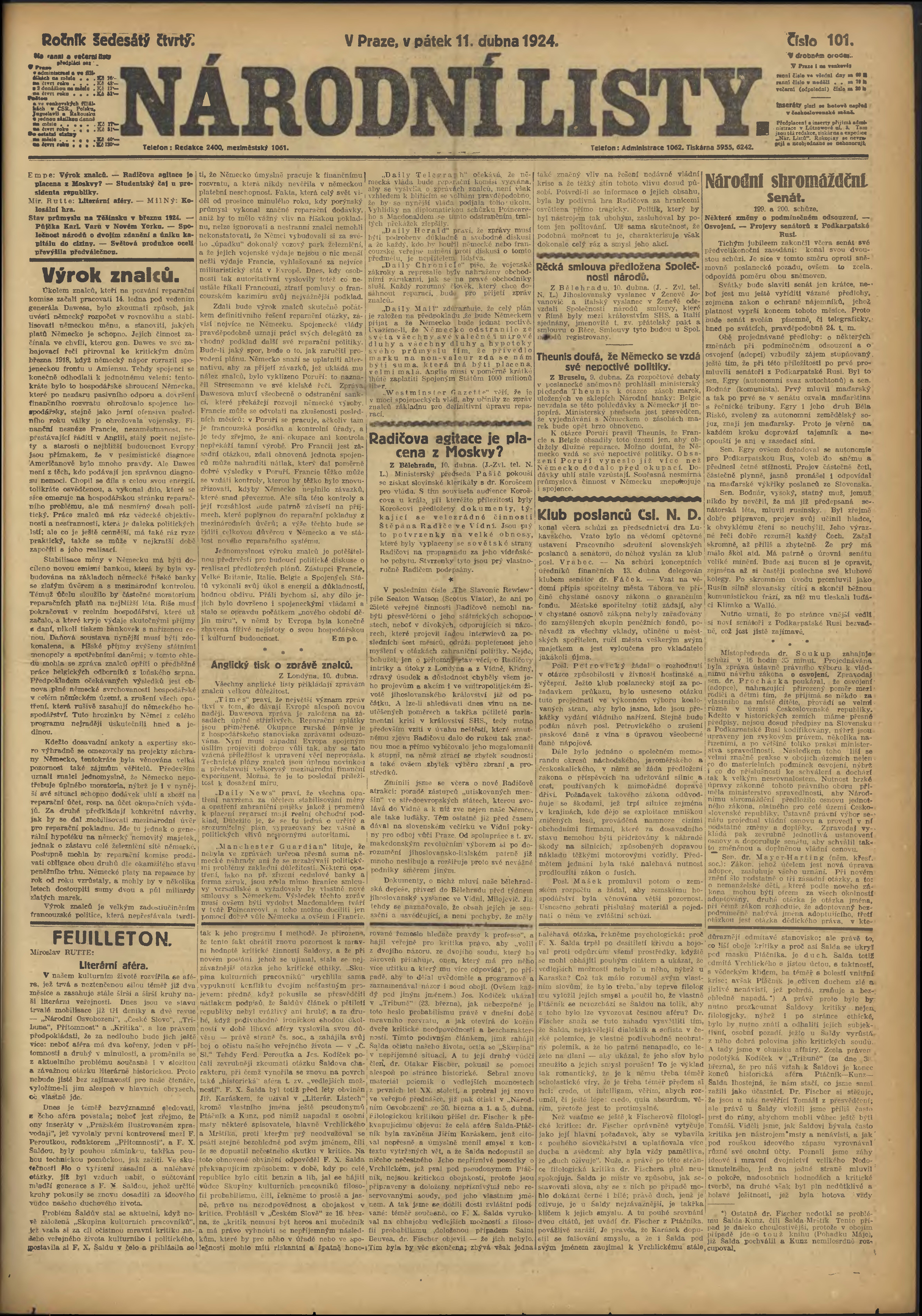 * Datum vydání výtisku: 11.4.1924 Číslo výtisku: 101