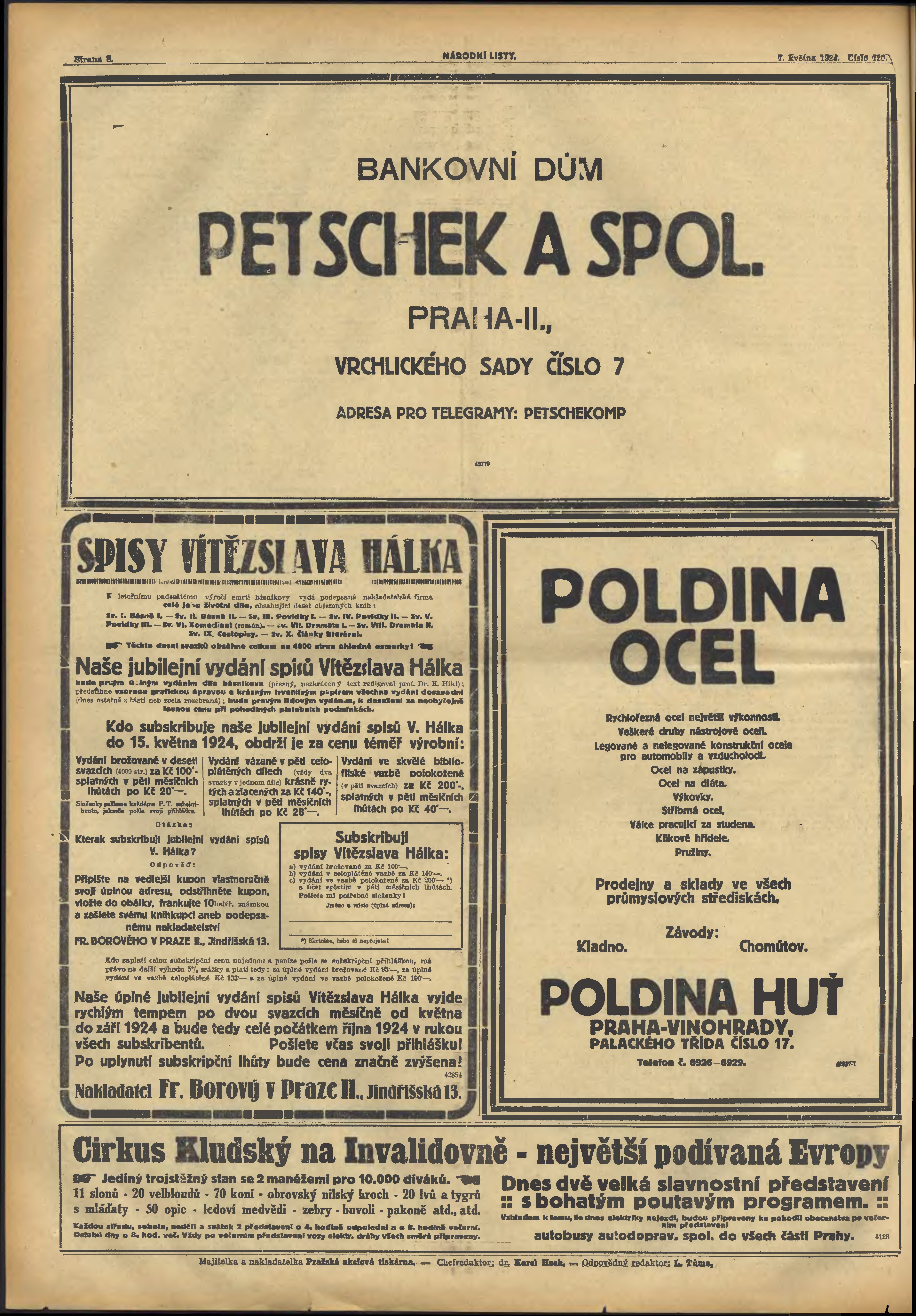 * Datum vydání výtisku: 1.5.1924 Číslo výtisku: 120