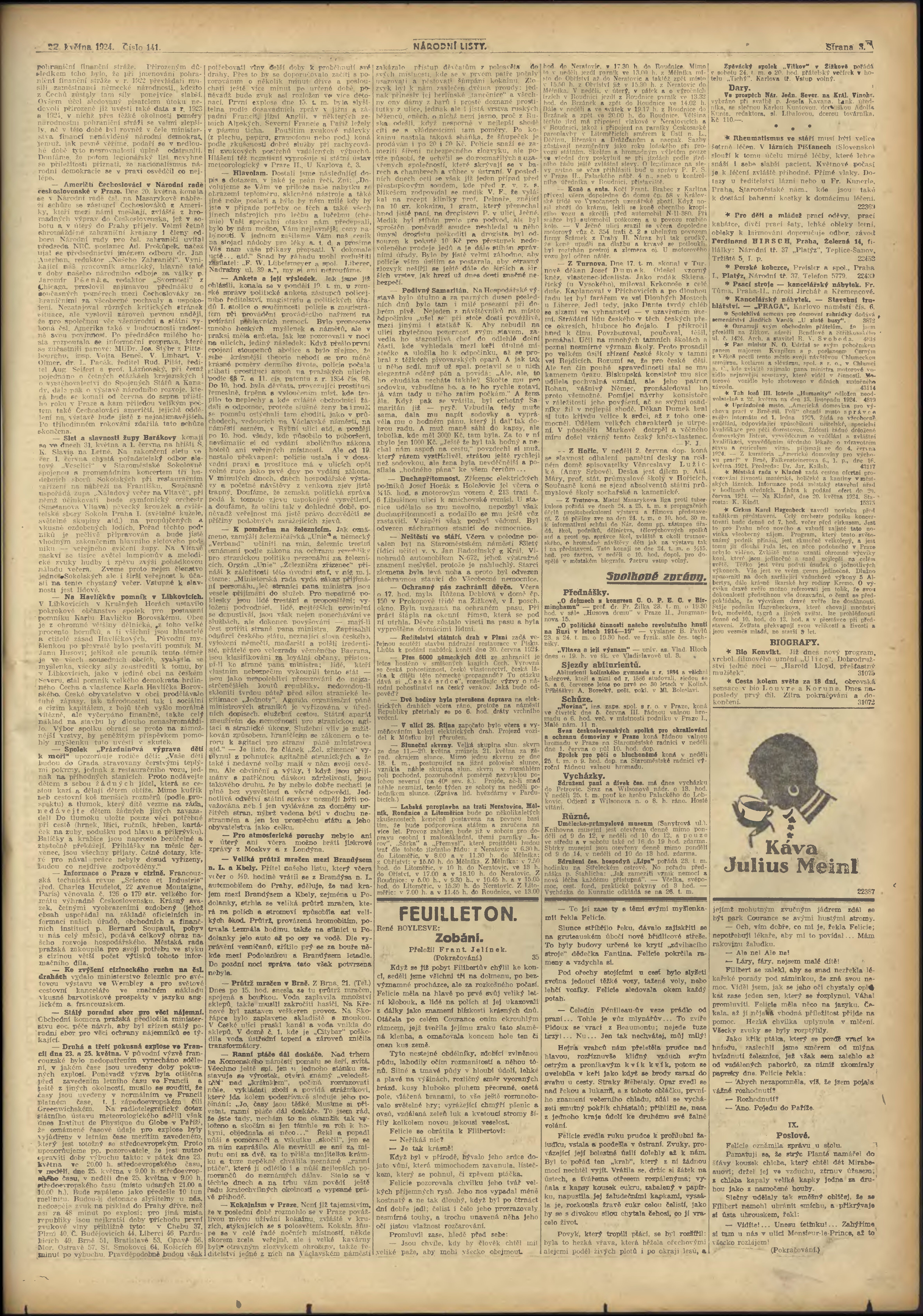 * Datum vydání výtisku: 22.5.1924 Číslo výtisku: 141