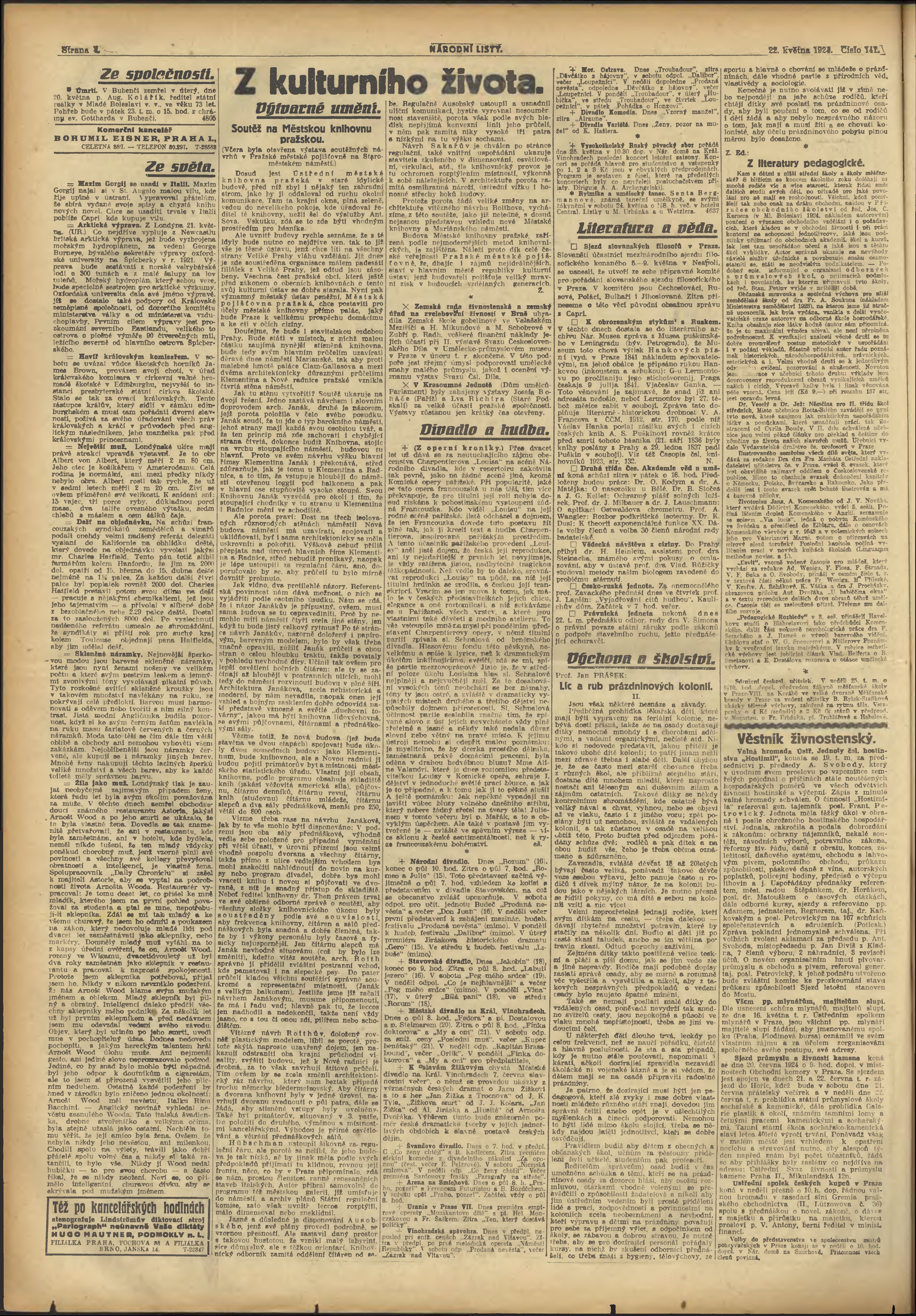 * Datum vydání výtisku: 22.5.1924 Číslo výtisku: 141