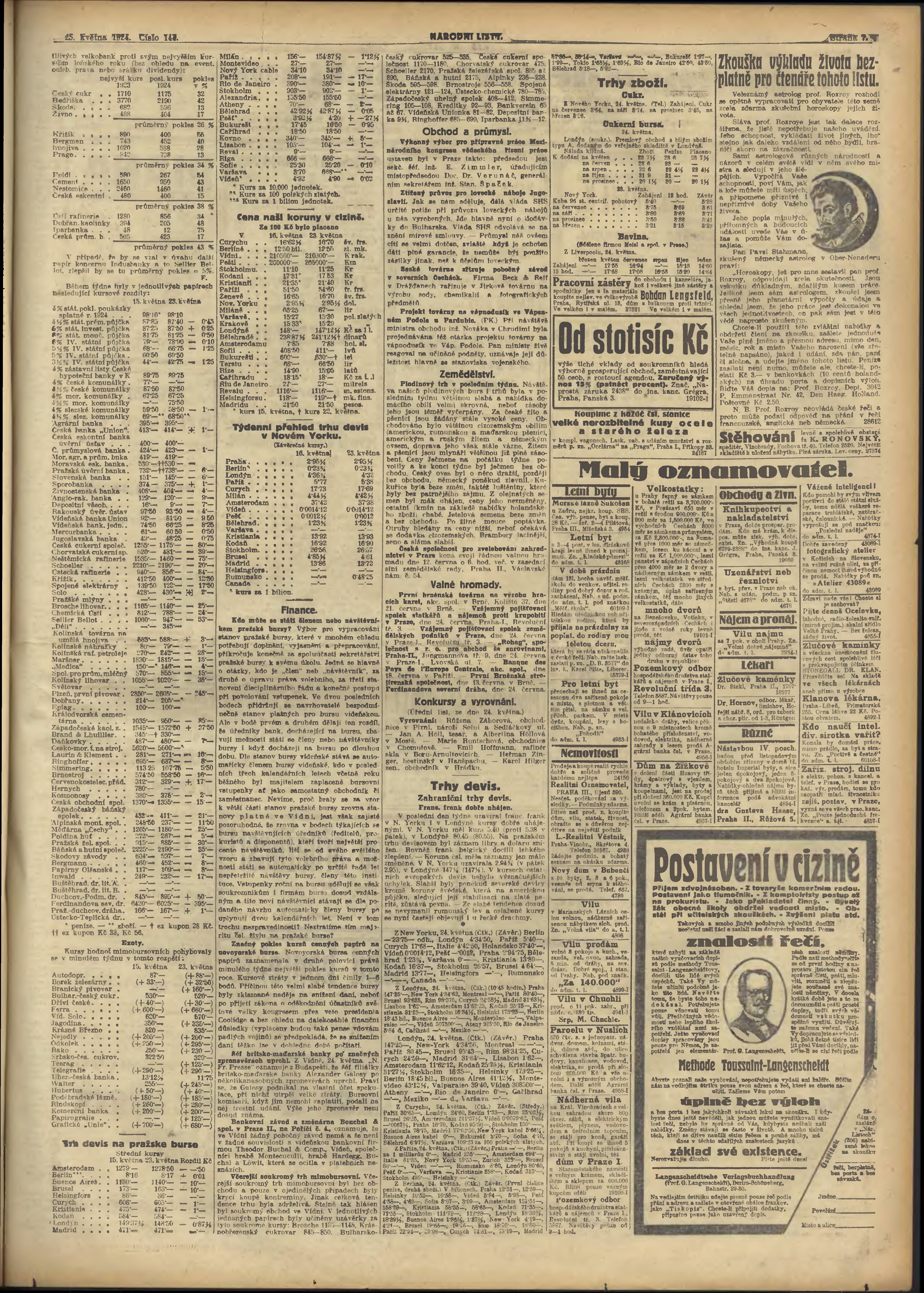 * Datum vydání výtisku: 25.5.1924 Číslo výtisku: 144