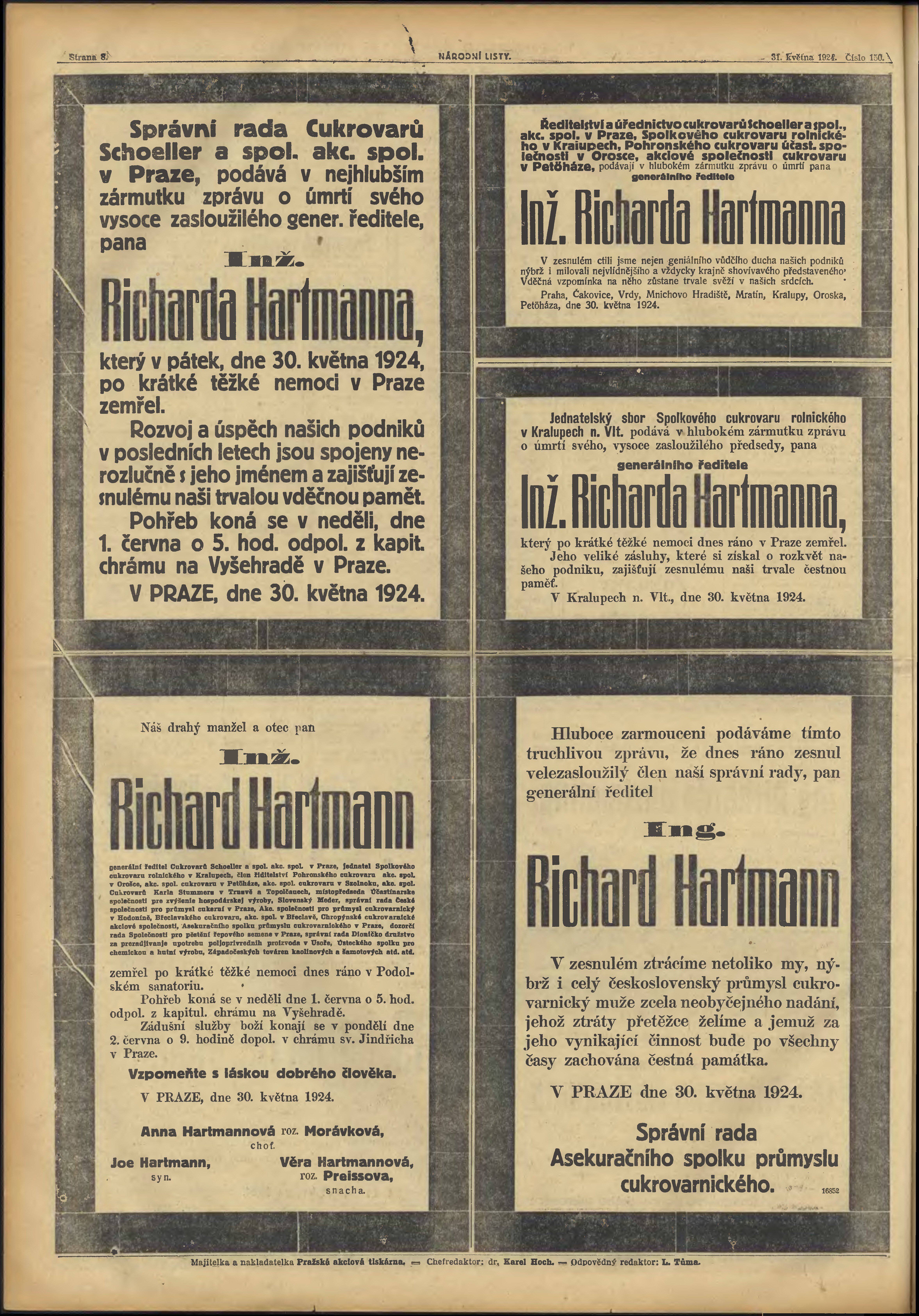 * Datum vydání výtisku: 31.5.1924 Číslo výtisku: 150