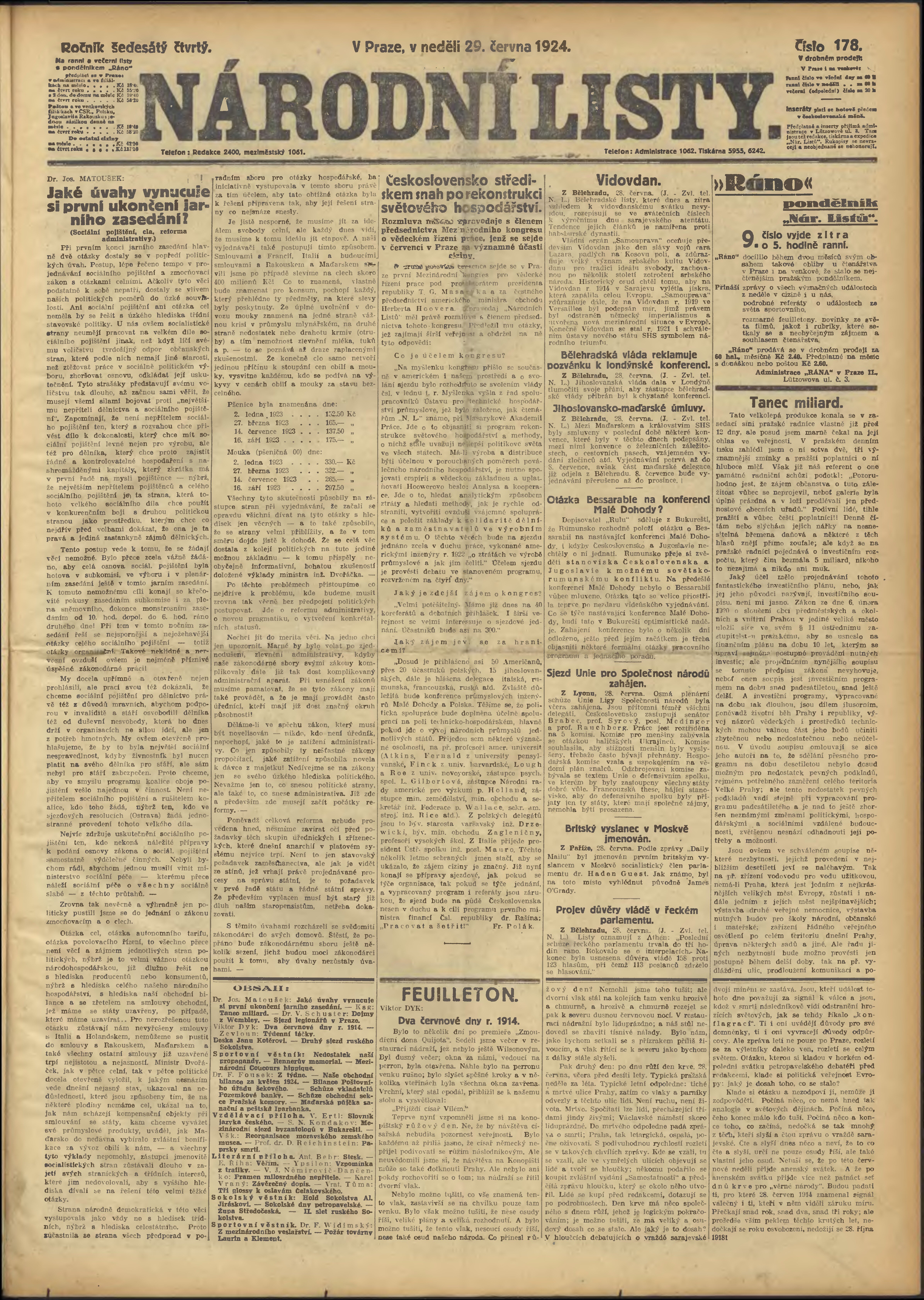 * Datum vydání výtisku: 29.6.1924 Číslo výtisku: 178