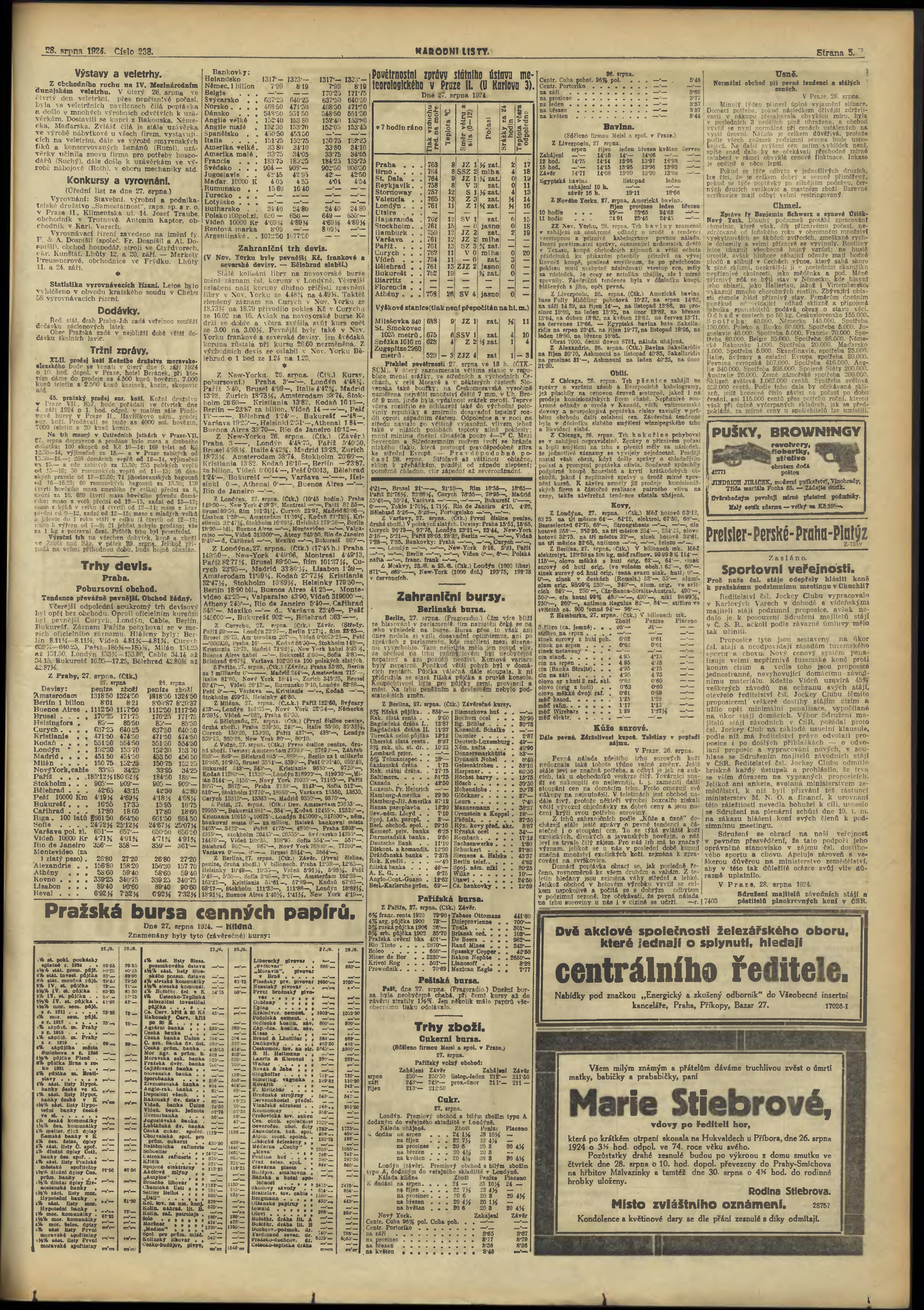 * Datum vydání výtisku: 28.8.1924 Číslo výtisku: 238