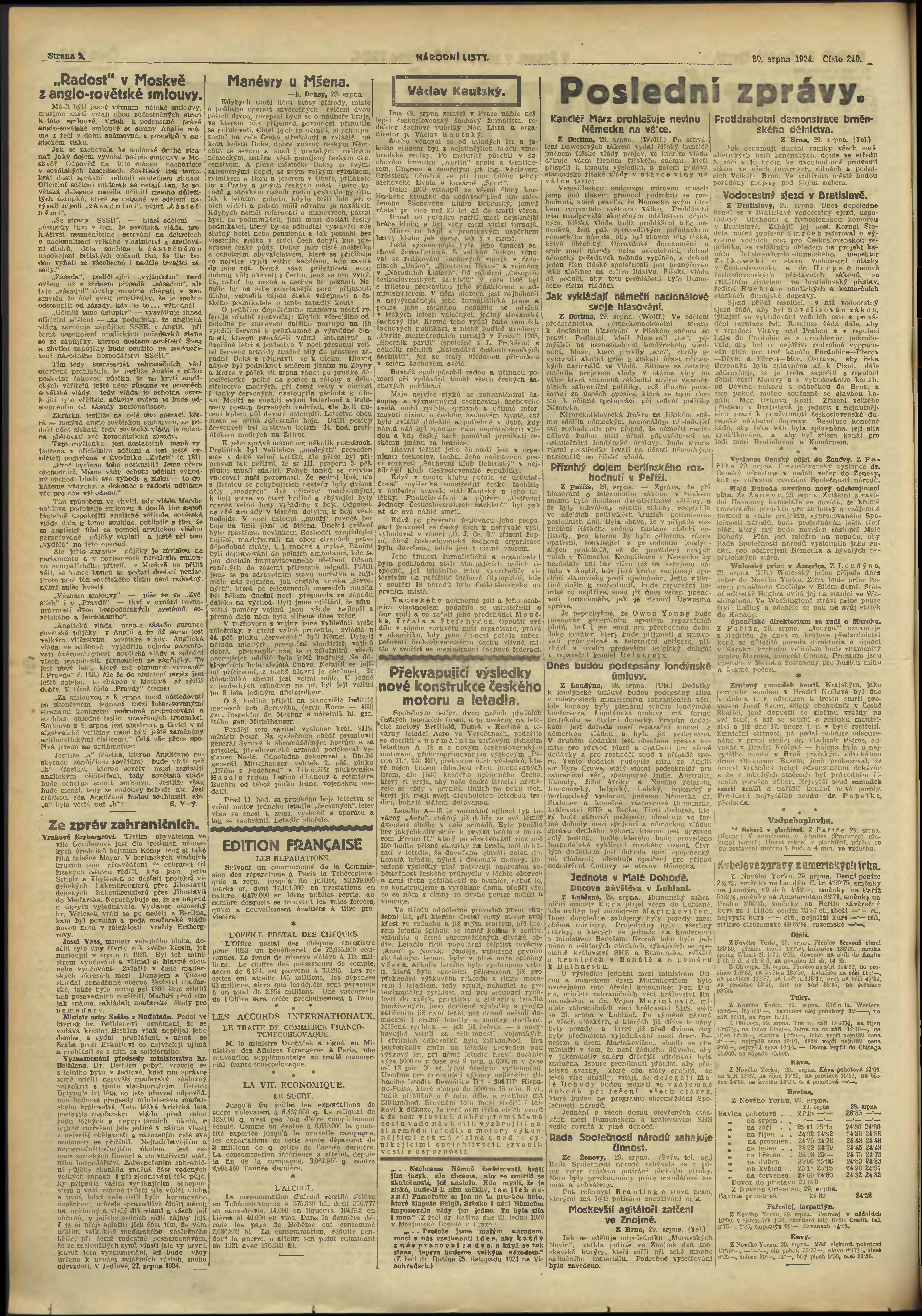 * Datum vydání výtisku: 30.8.1924 Číslo výtisku: 240