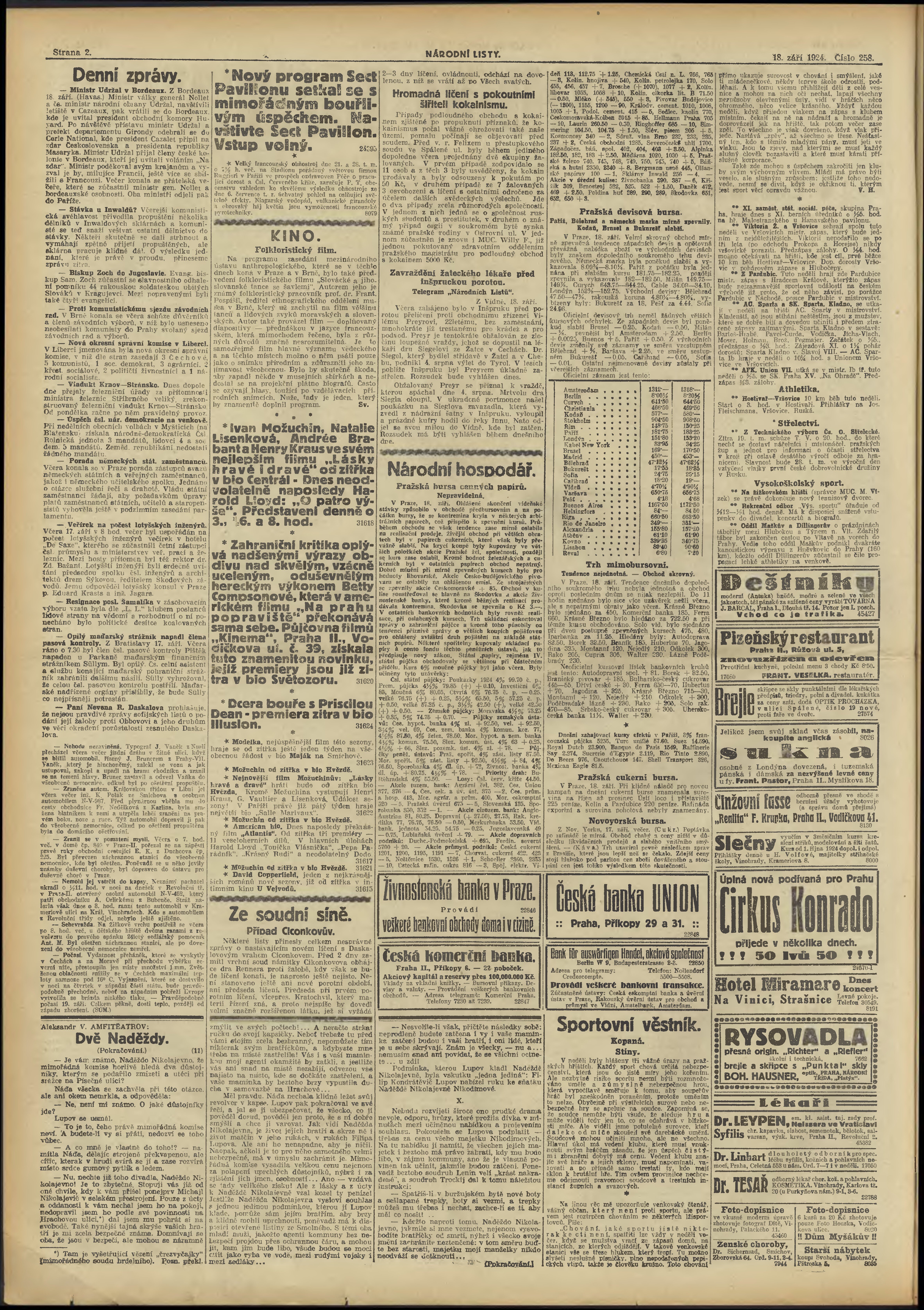 * Datum vydání výtisku: 18.9.1924 Číslo výtisku: 258 Poznámky k výtisku: večerní vydání;