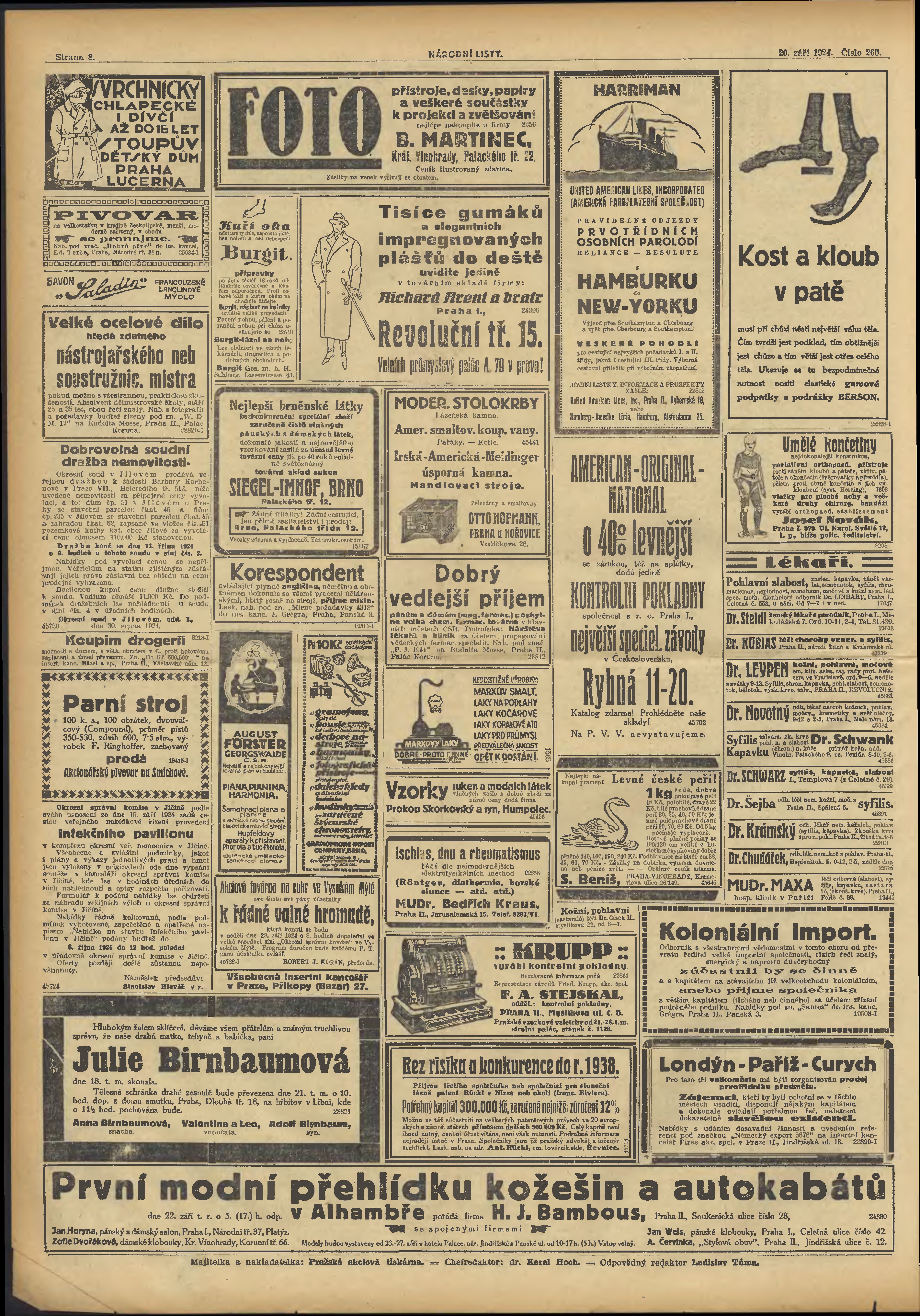 * Datum vydání výtisku: 20.9.1924 Číslo výtisku: 260