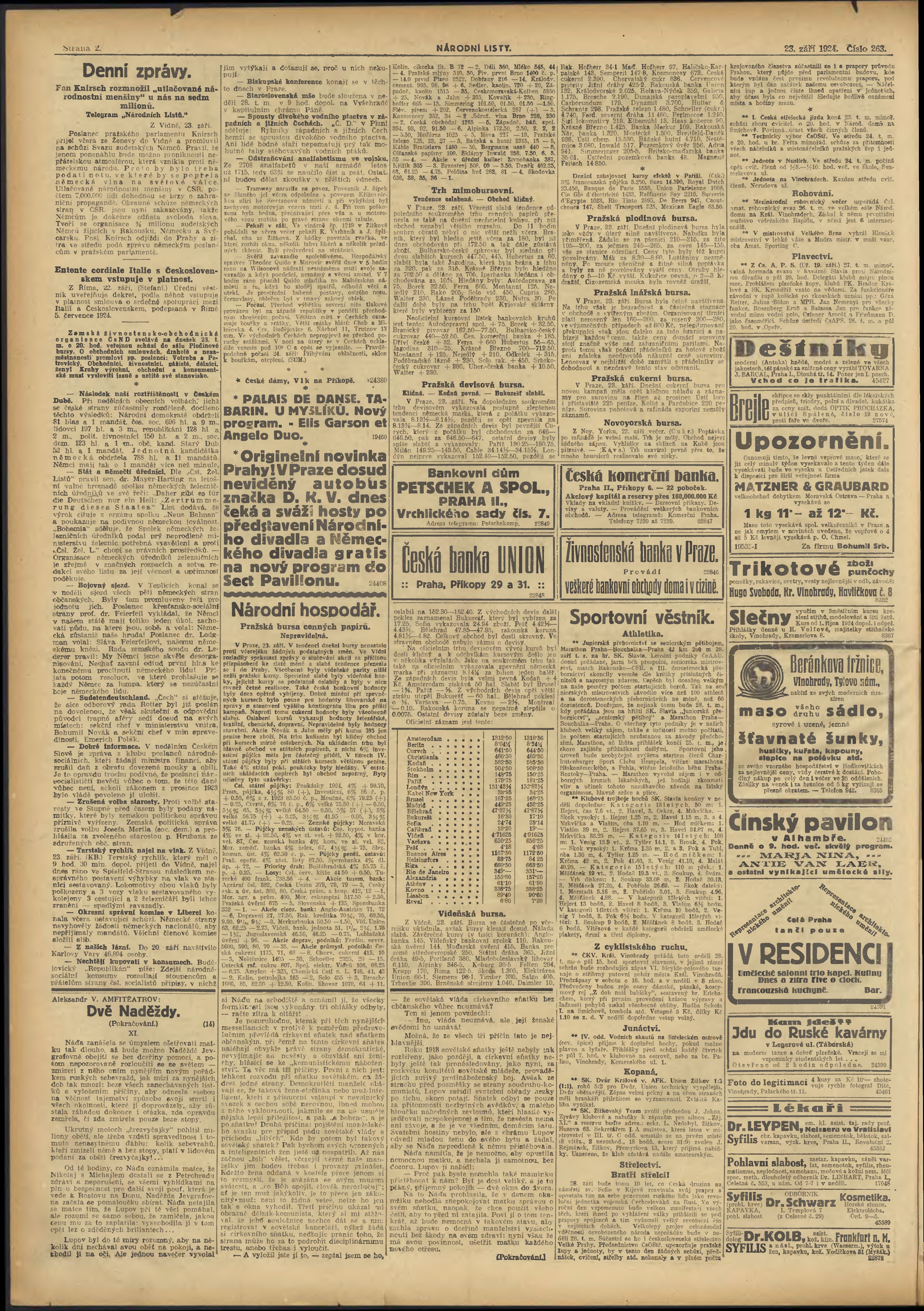 * Datum vydání výtisku: 23.9.1924 Číslo výtisku: 263 Poznámky k výtisku: večerní vydání;