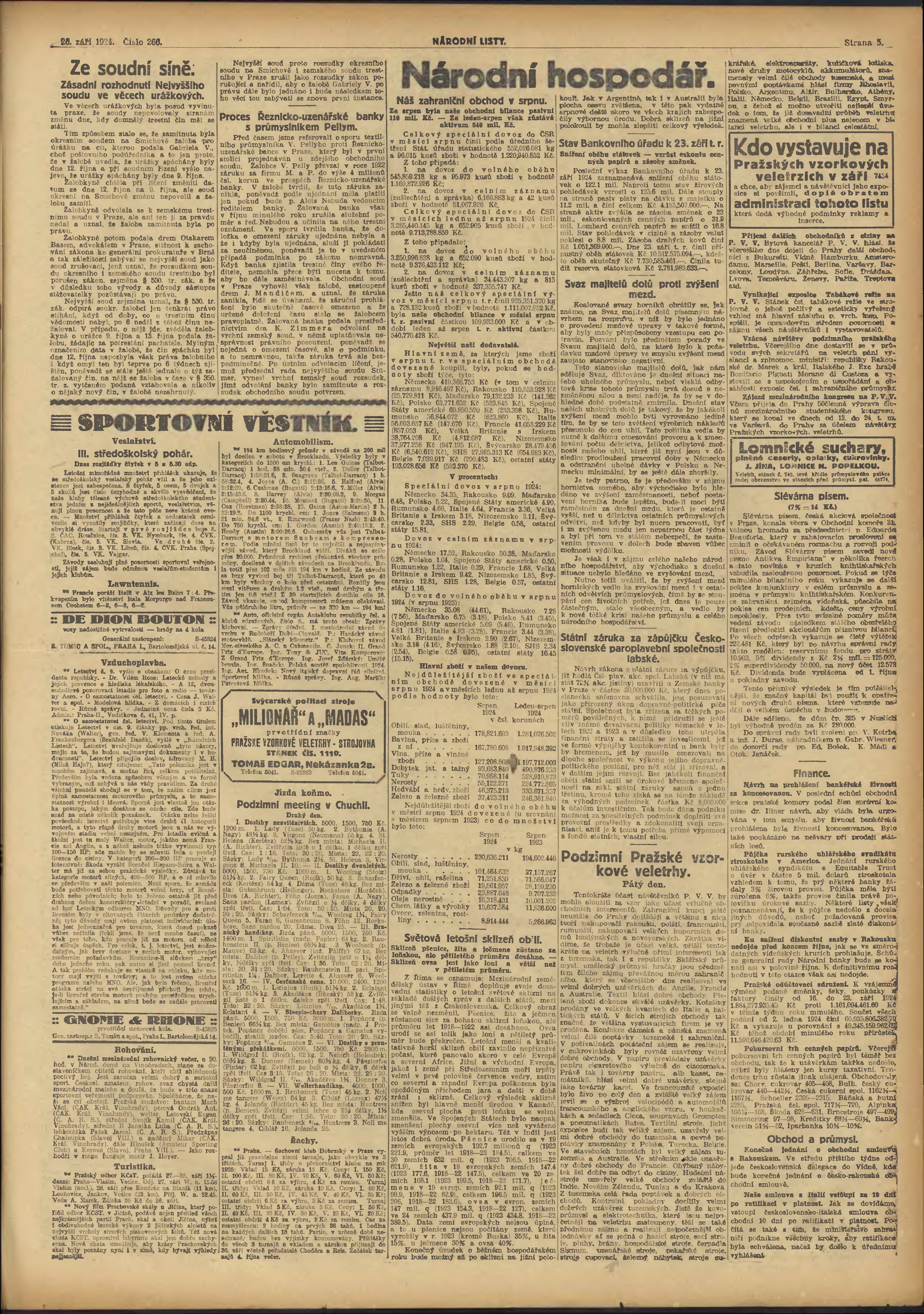 * Datum vydání výtisku: 26.9.1924 Číslo výtisku: 266