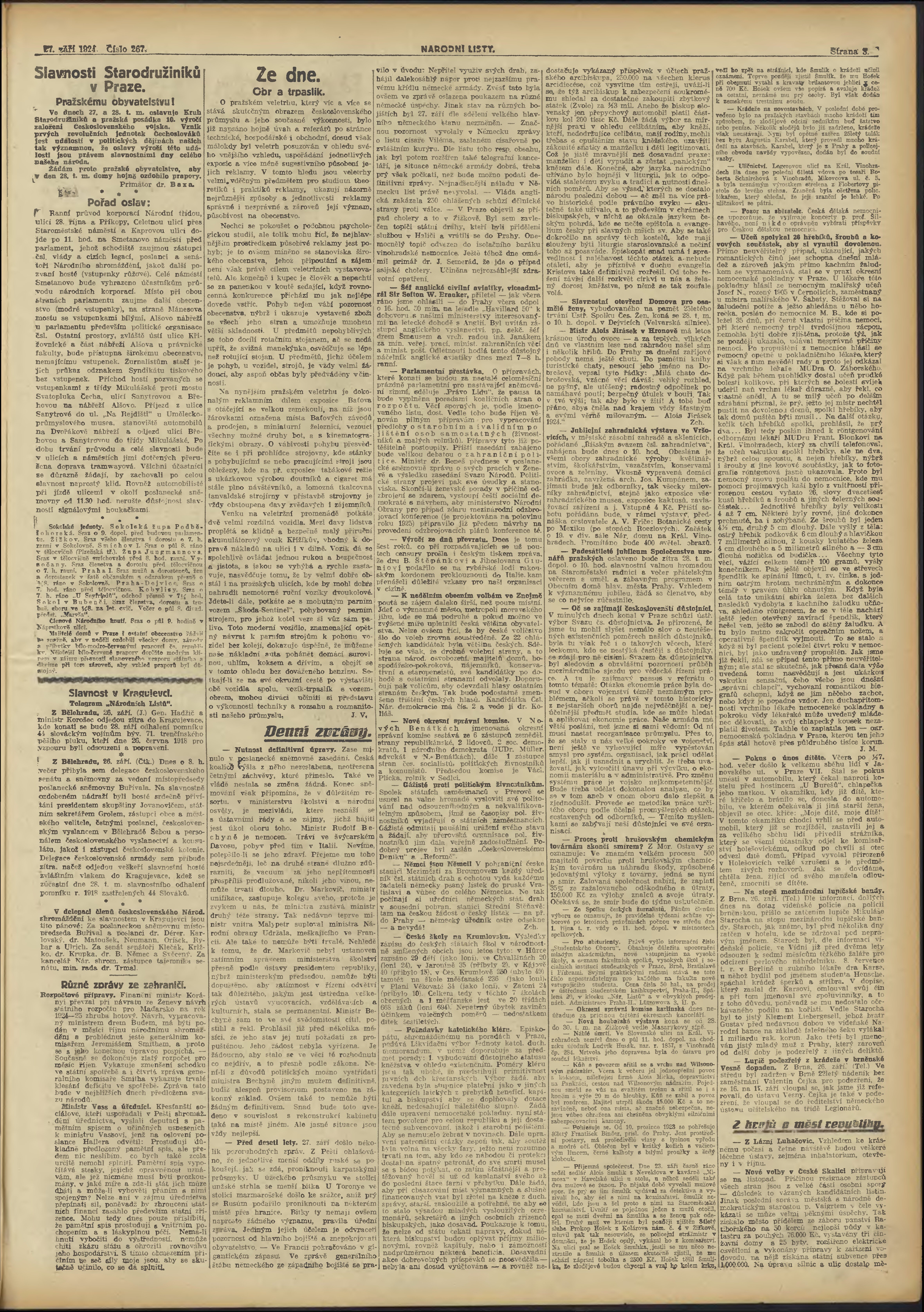 * Datum vydání výtisku: 27.9.1924 Číslo výtisku: 267